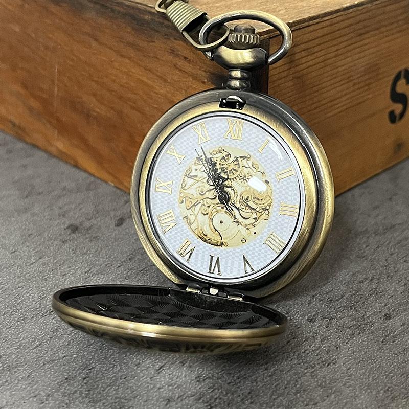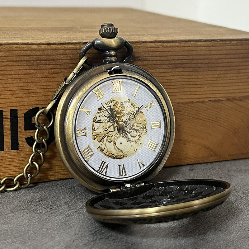 Comércio exterior venda quente Novo em estoque criativo oco retro flip engrenagem padrão Bronze relógio de bolso