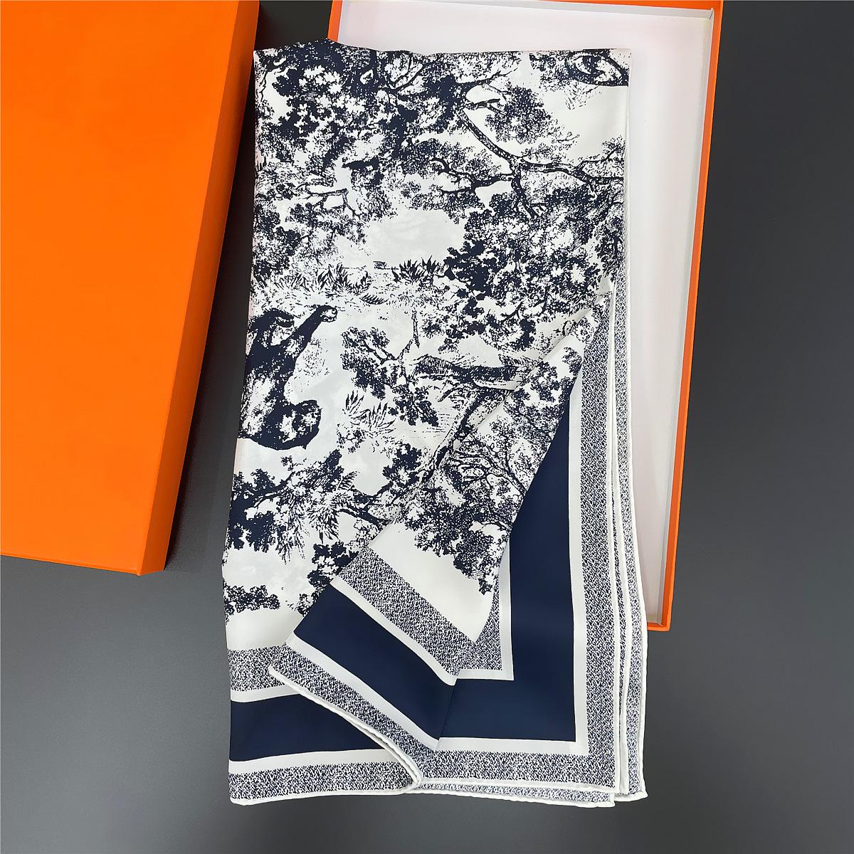 Novo Lenço Quadrado de Seda Sarja 90 Mesa Impresso Feito à Mão Refinado Enrolado Outono e Inverno Xale Cachecol Retro Grande Lenço Quadrado All-match