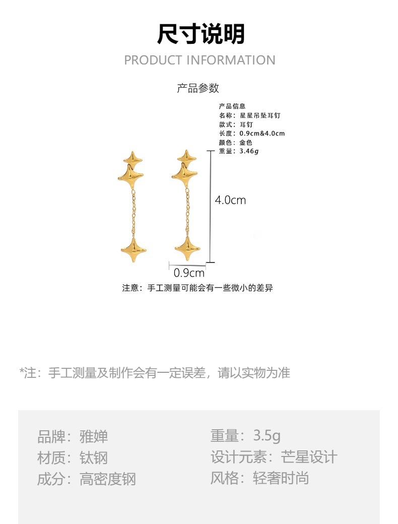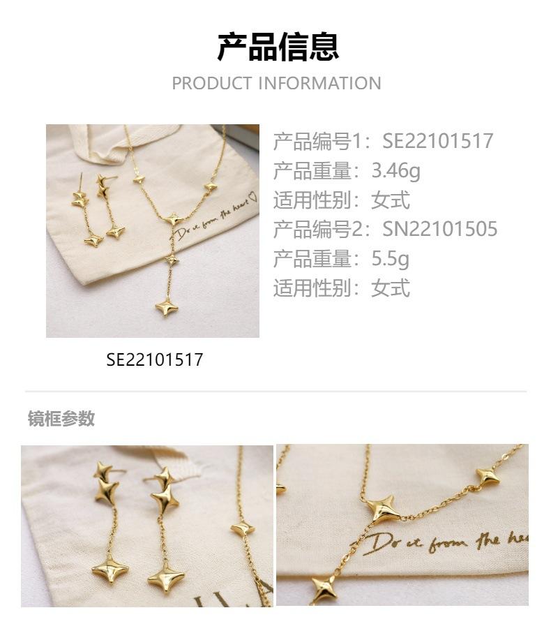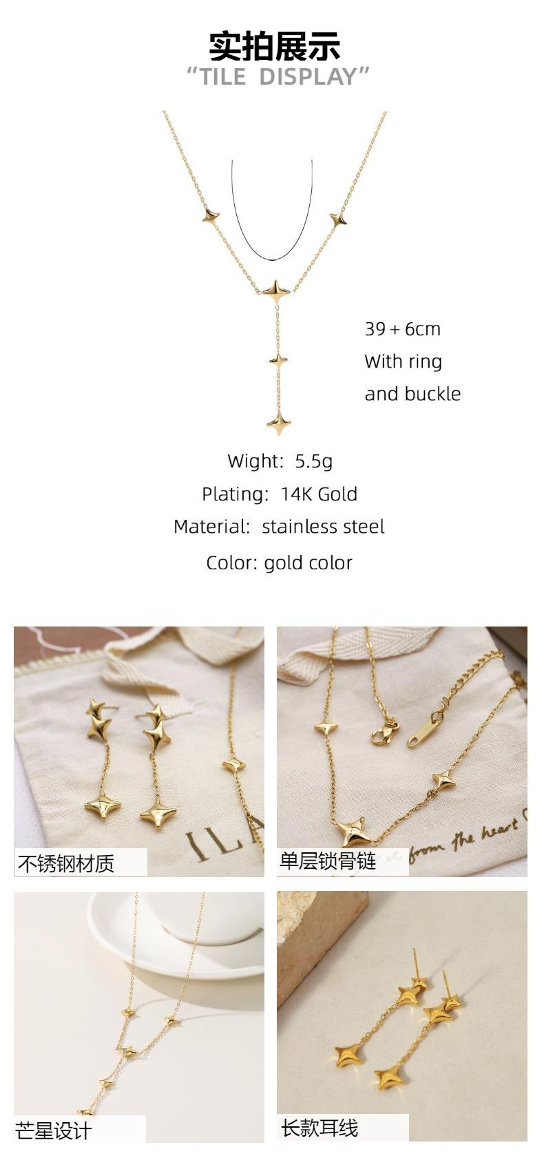 Conjunto de Brincos de Colar Fino Francês INS Ouro 18K Brincos de Aço Titânio Corrente de Clavícula Pingente de Estrela de Quatro Homens para Mulheres