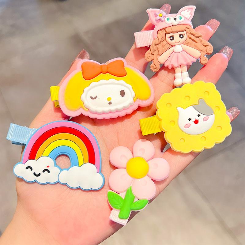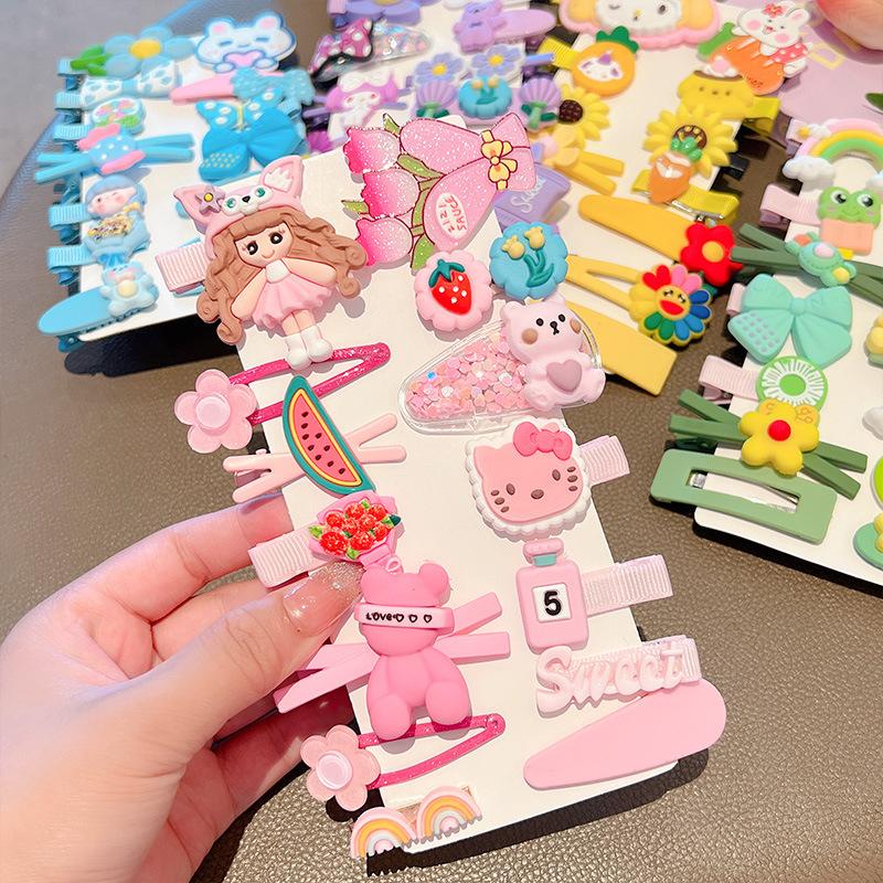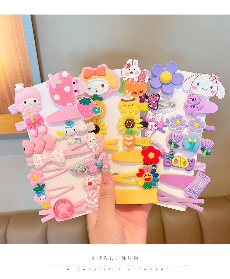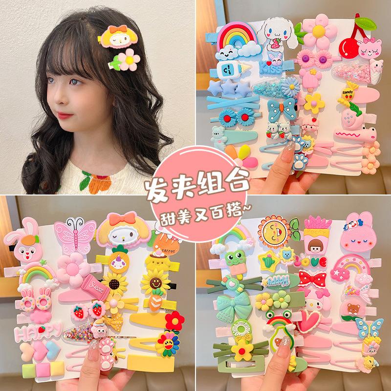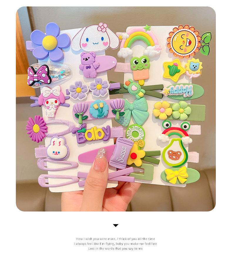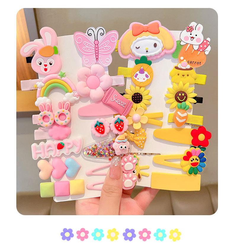 Conjunto de 14 peças de grampos de cabelo de flores, acessórios de cabelo coreanos para crianças, grampos de cabelo quebrados para meninas, grampos de cabelo de bebê, acessórios de cabeça de desenho animado