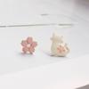 Compre S925 brincos de prata agulha gato bonito flor brincos japoneses temperamento simples personalidade brincos assimétricos para mulheres atacado no atacado no Joom.pro
