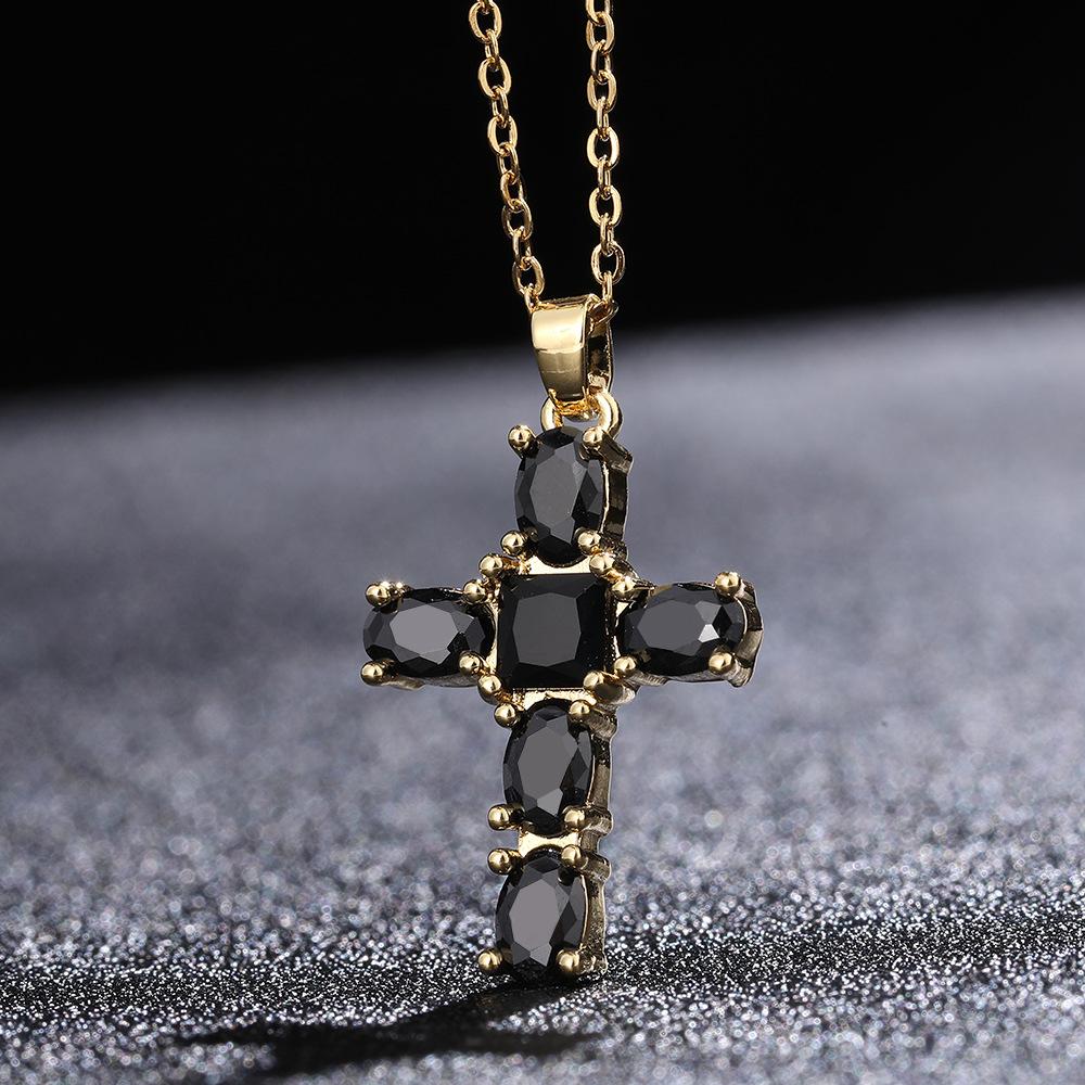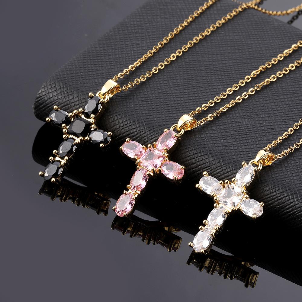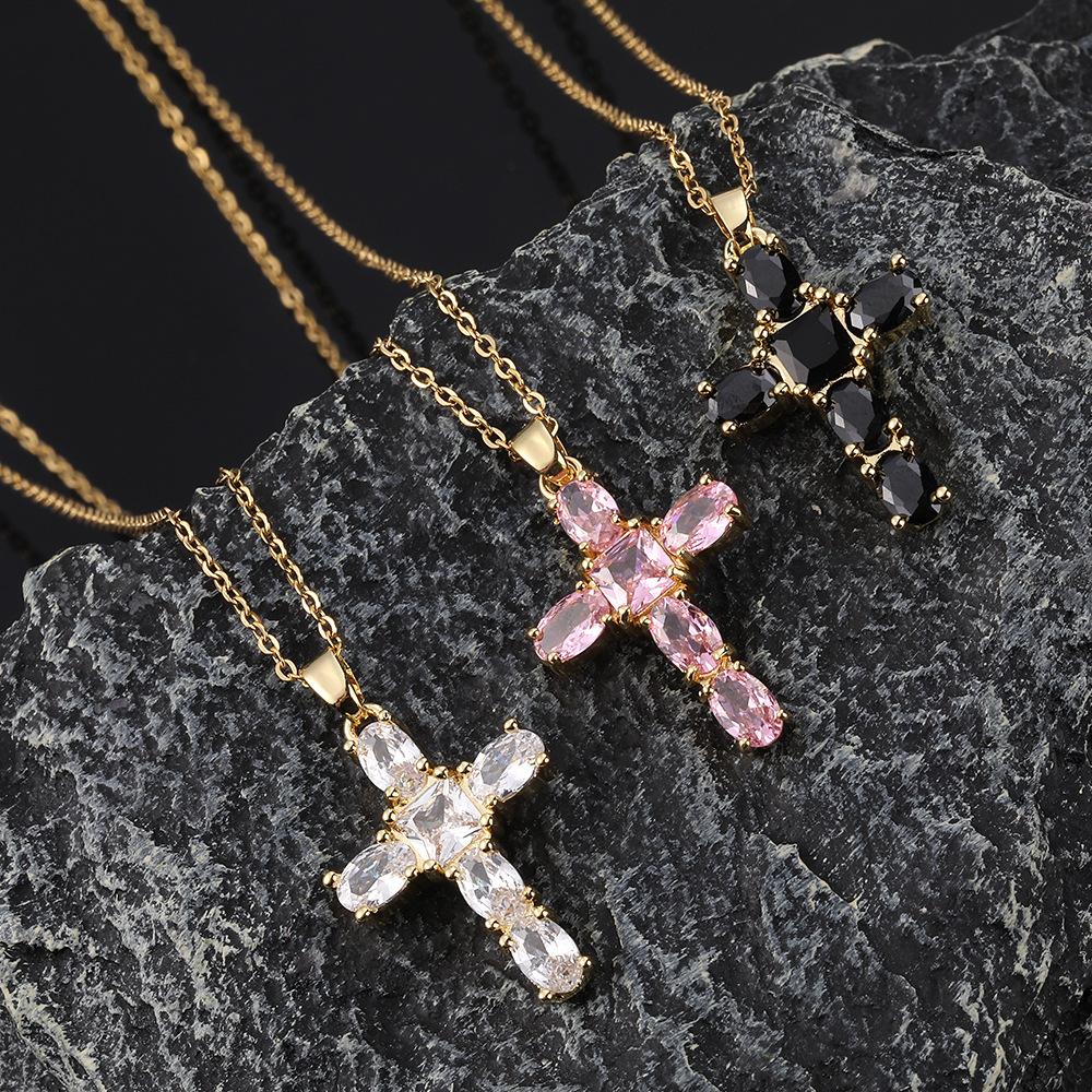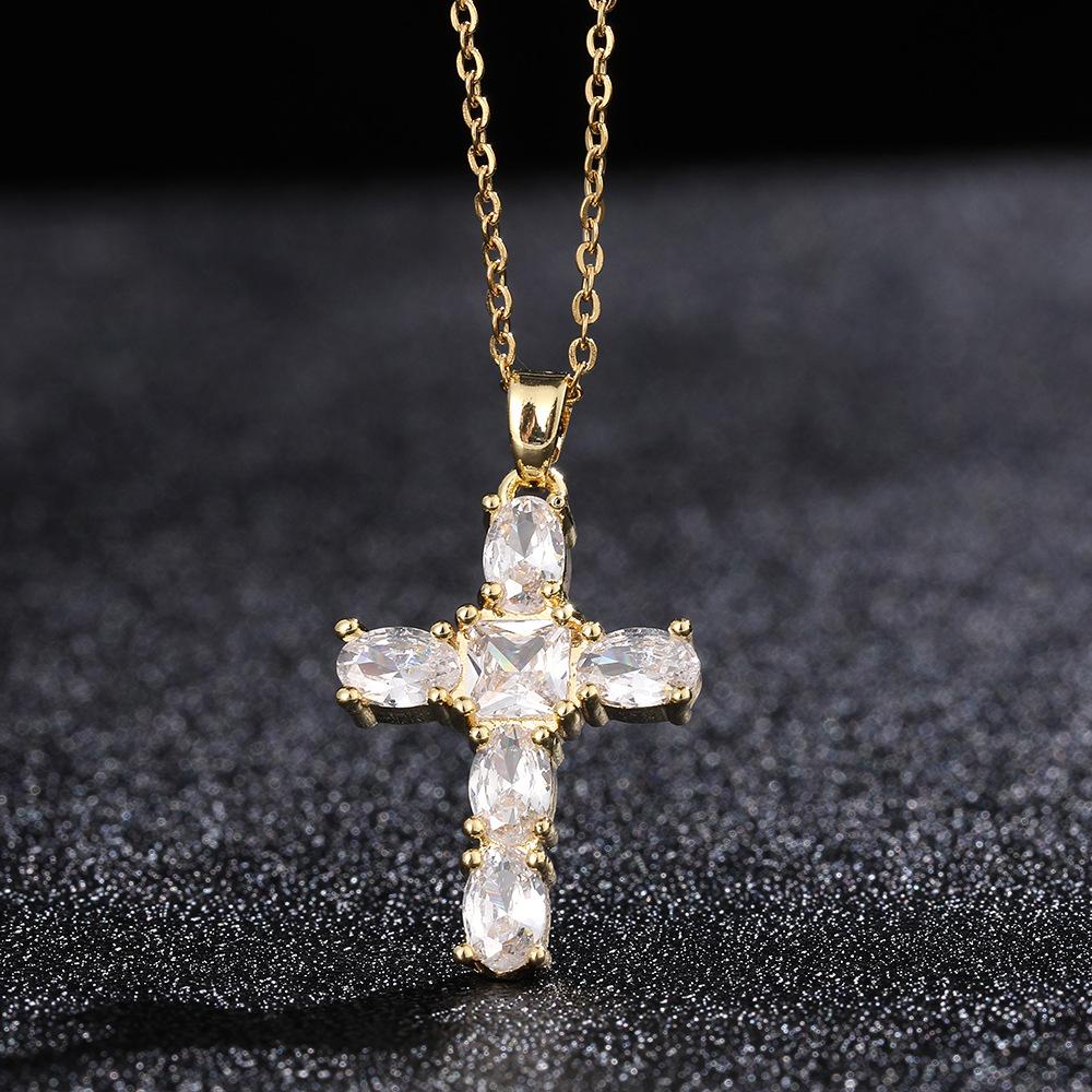 Colar Croton Cruz com Diamantes Completos da Moda Hip-Hop Joias Europeias e Americanas Atacado Pingente Cruz Corrente Clavicular para Mulheres