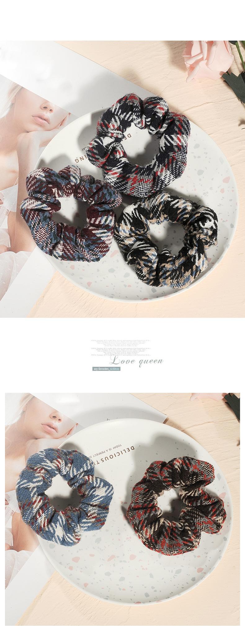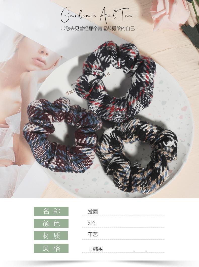 Iu Mesmo Estilo Elegante Xadrez Intestino Grande Anel Outono e Inverno Novo Tecido Xadrez Bola Cabeça Corda Rabo de Cavalo Elástico Corda de Cabelo