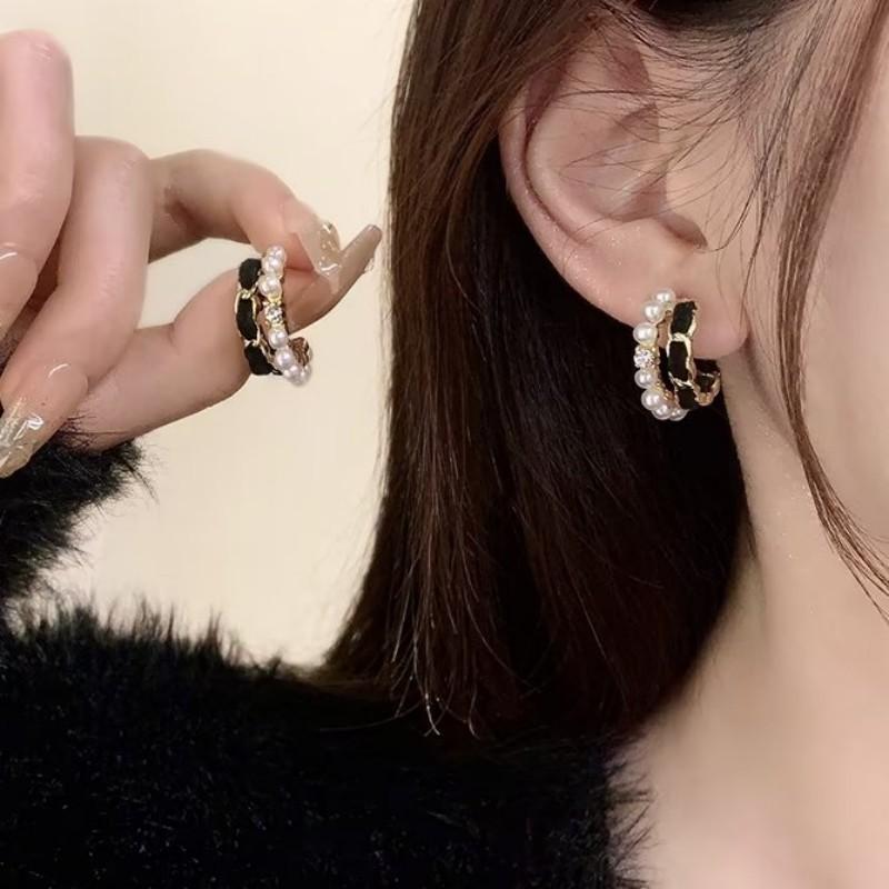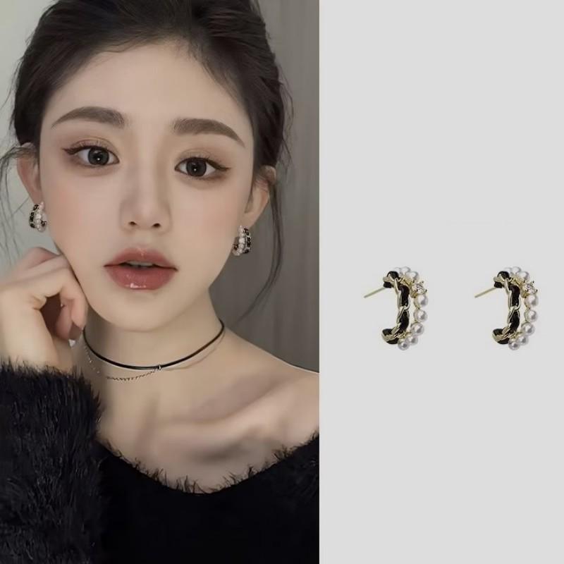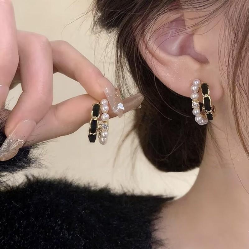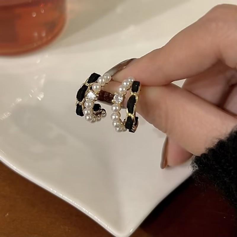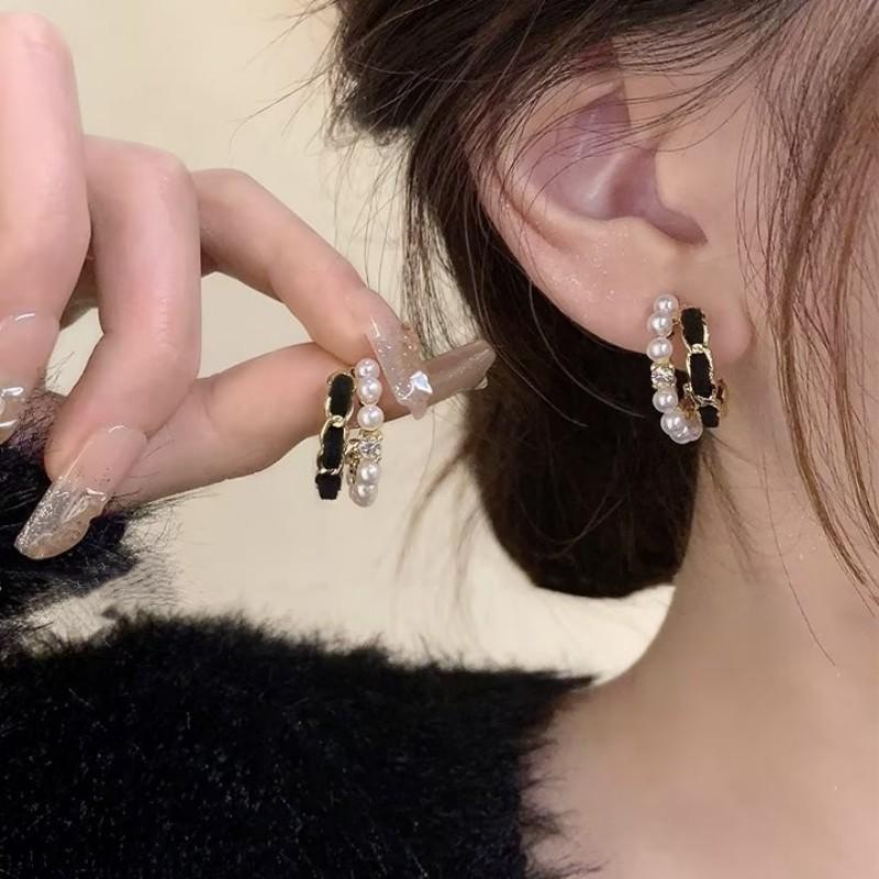 Brincos de Pérola de Veludo Preto Brincos Brincos Femininos Leves de Luxo High-end Temperamento Personalizado Brincos Design de Nicho