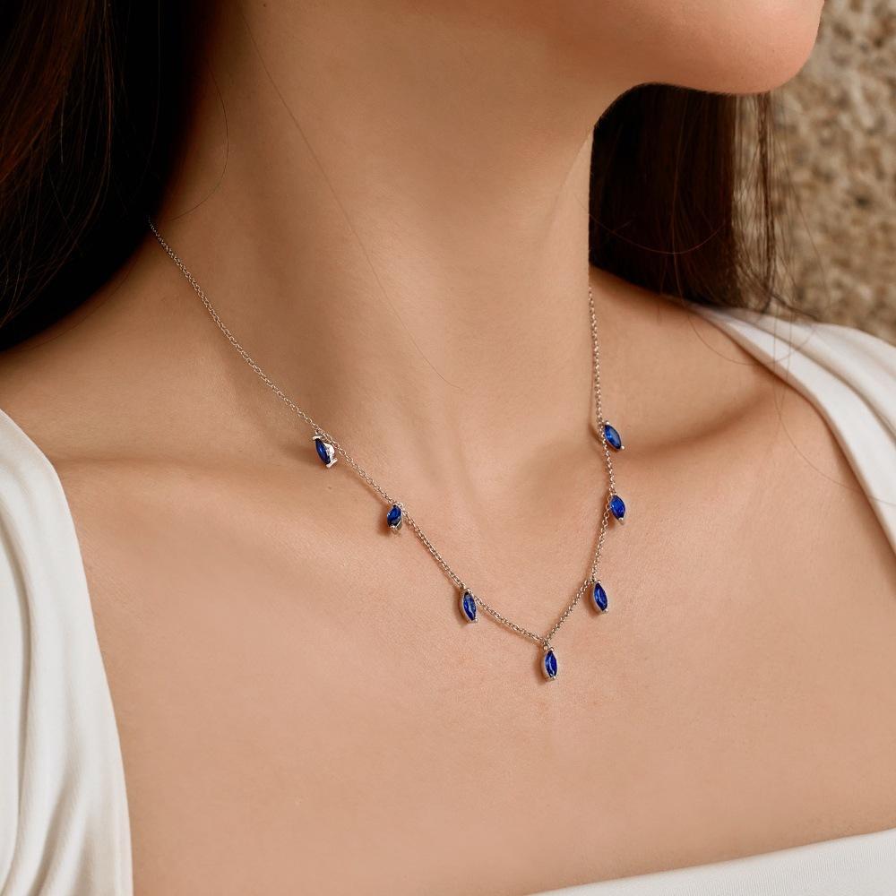 Cross-border coreano-estilo S925 Sterling Silver Colar High-end Cavalo Eye-shaped Elegante Estilo Elegante Cadeia de clavícula em estoque
