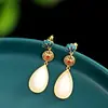 Personagem Prata s925 Prata Hetian Jade Brincos Estilo Étnico Queimado Azul Mulheres Brincos de Gota de Água Xiangyun Brincos Tendência