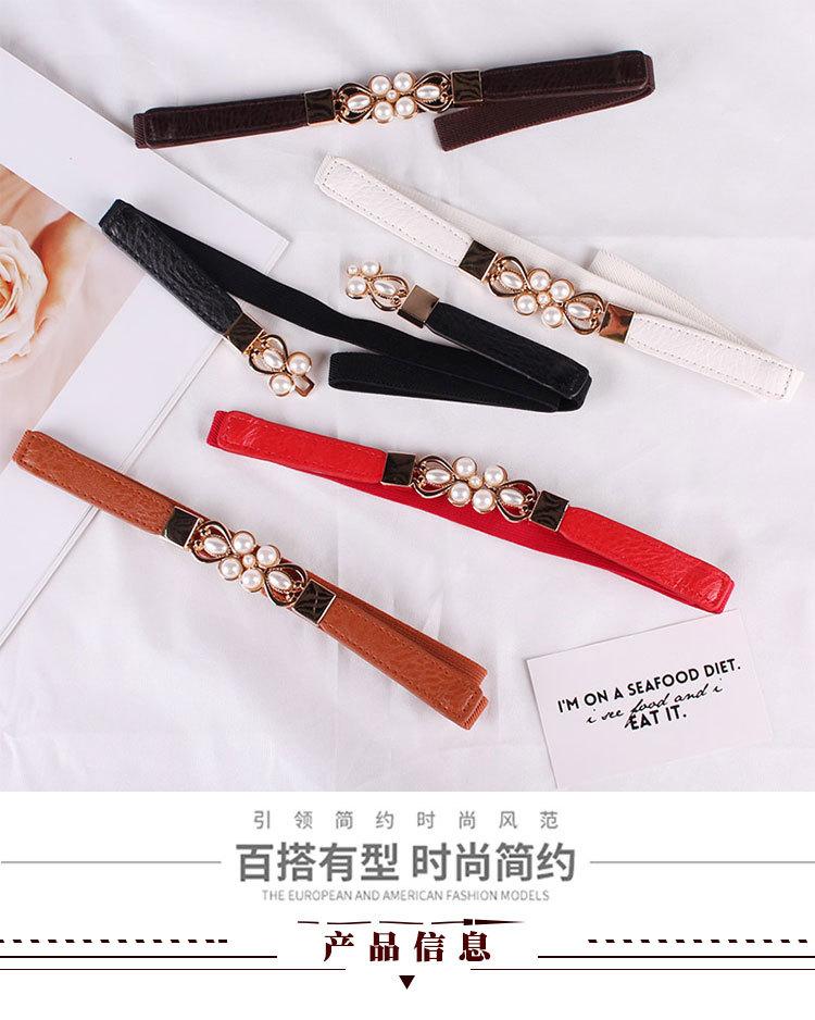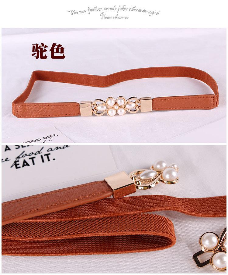 Compre Selo de cintura fina Vestido feminino para todos os jogos Elástico Elástico Cintura Corrente Pérola Decorativo Cinto Pequeno Cinto Estreito Saia no atacado no Joom.pro