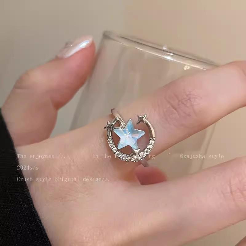 Compre Star River Acompanhado ~ Star Zircon Ring Women's Ins Light Luxury High Feeling Elegant Ring Anel de cauda personalizado para todos os jogos no atacado no Joom.pro