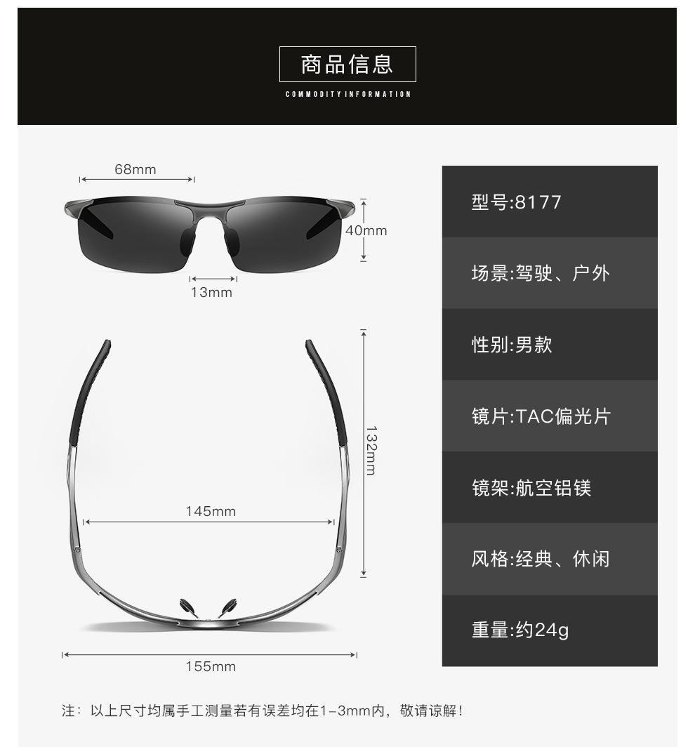 Óculos de Sol Polarizados de Alumínio Magnésio Transfronteiriços em Estoque Óculos de Pesca Masculinos Óculos de Visão Noturna para Dirigir à Noite 8177 Óculos de Sol