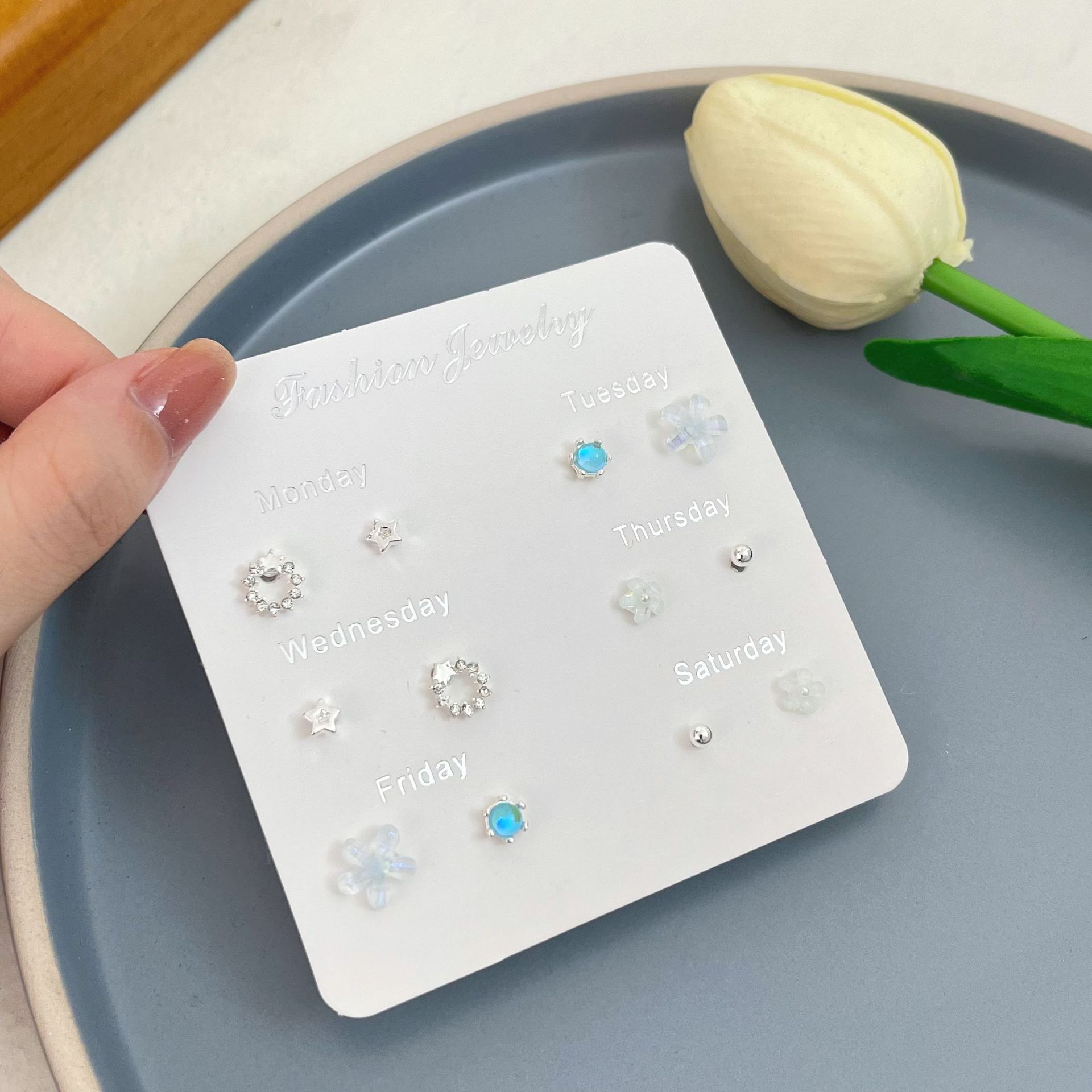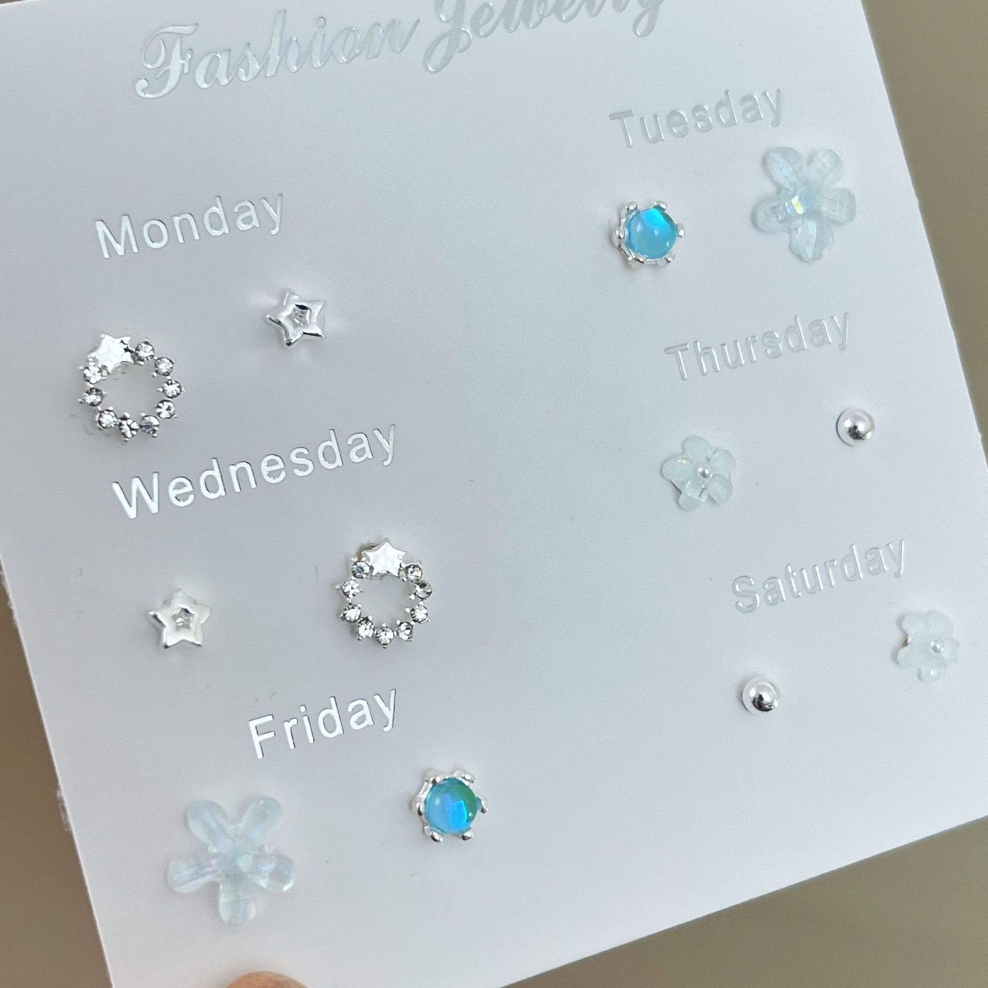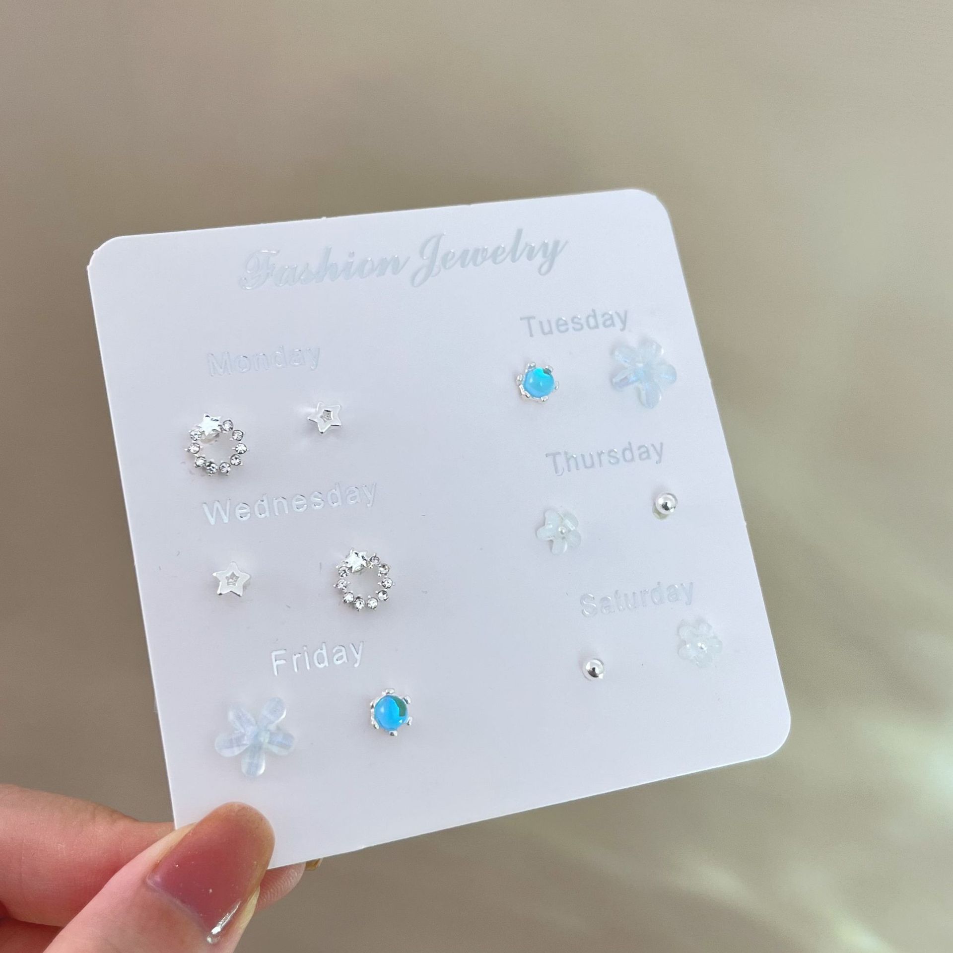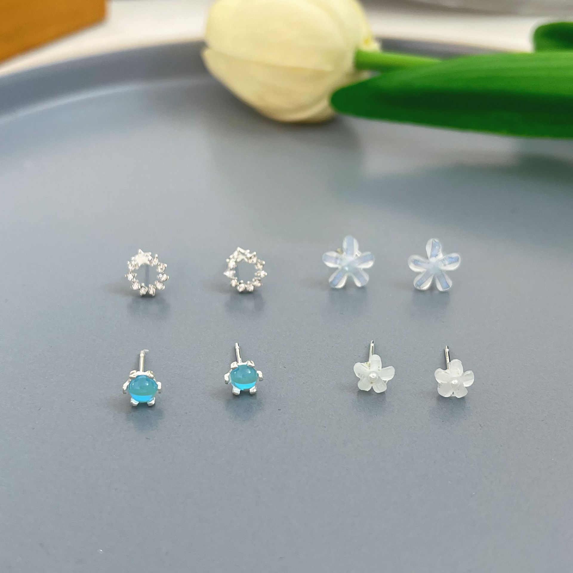 Compre S925 brincos de pino de flor de gelo de agulha de prata terno combinação feminino pequeno simples brincos de combinação frescos brincos doces no atacado no Joom.pro