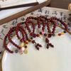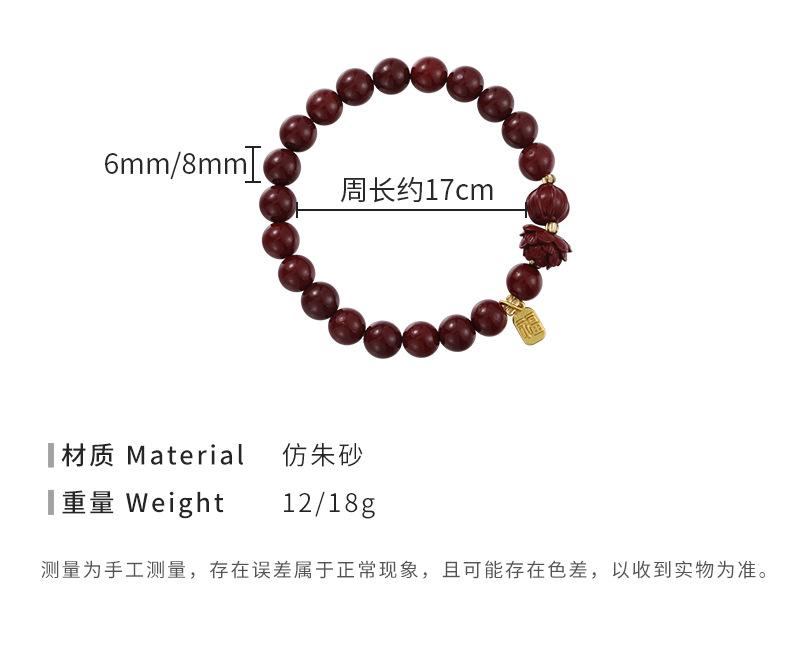 Pulseira artística retrô estilo chinês imitação vermelho cinábrio cordão com contas senso de moda pulseira de lótus acessórios de joalheria simples