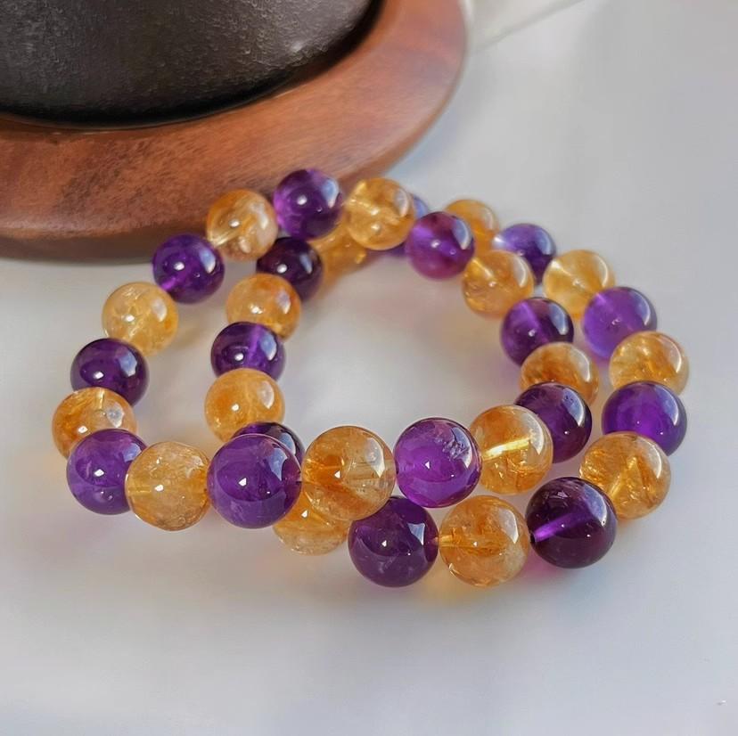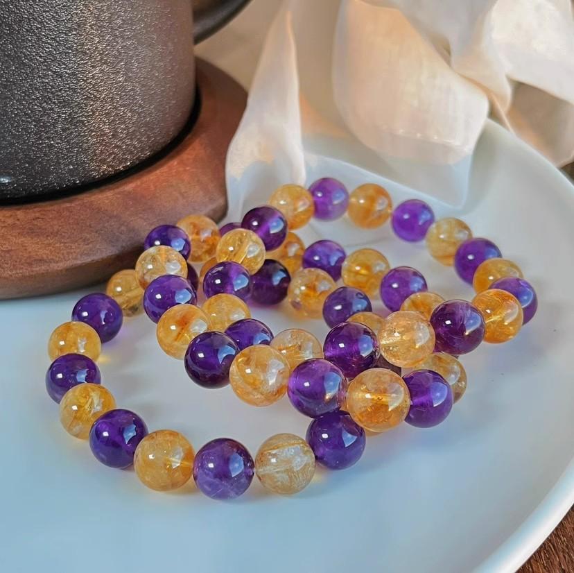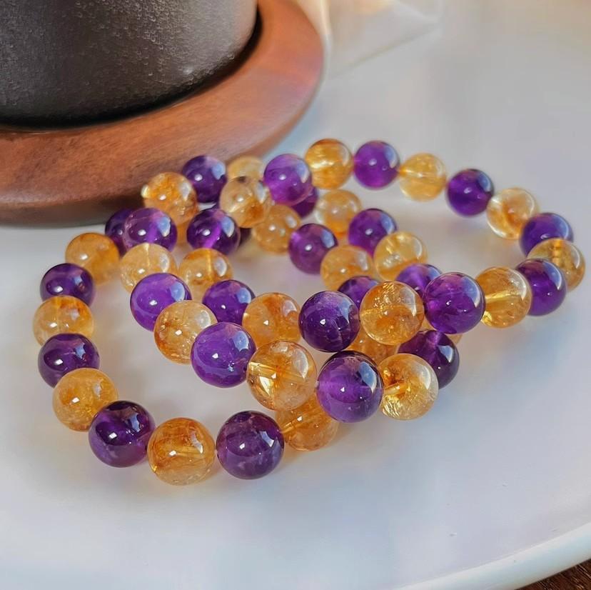 Suporte reinspeção pulseira de citrino ametista natural de 10mm pulseira de miçangas redondas de círculo único presente de aniversário feminino