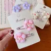 | Grampos de cabelo com laço floral infantil, conjunto de 2 peças, grampos de cabelo estilo coreano para franjas infantis, grampos bico de pato para meninas, grampos laterais fofos |