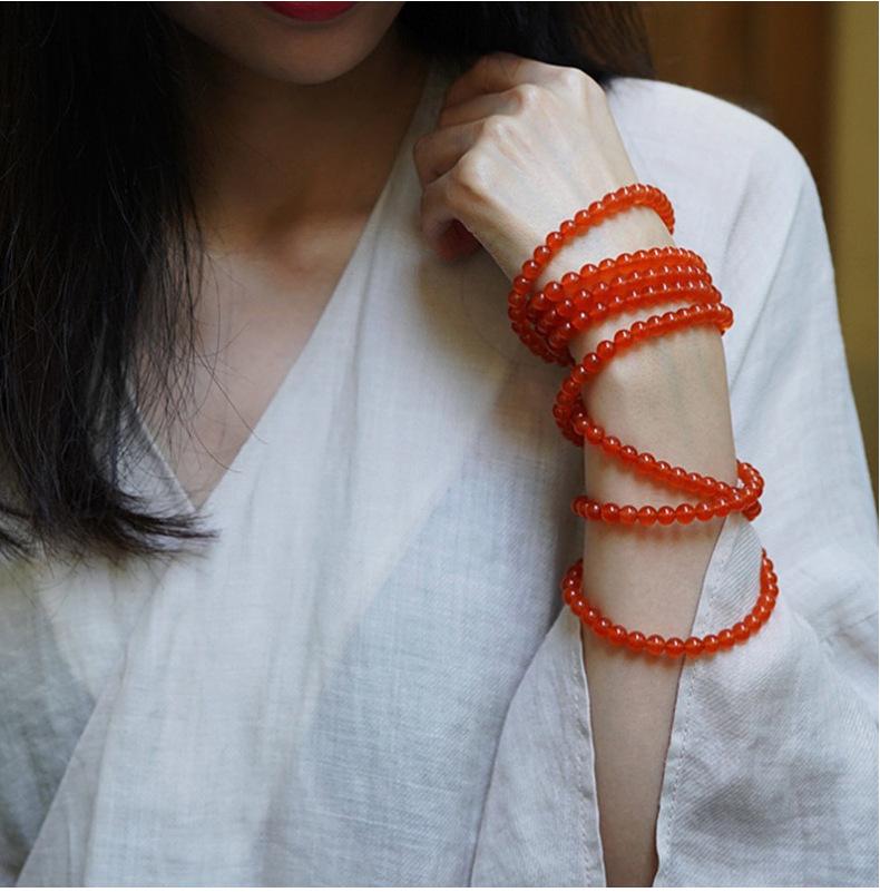 Pulseira de ágata vermelha do sul de Baoshan multi-anel 6mm108 contas redondas pulseira lisa multi-anel brilhante simples e elegante