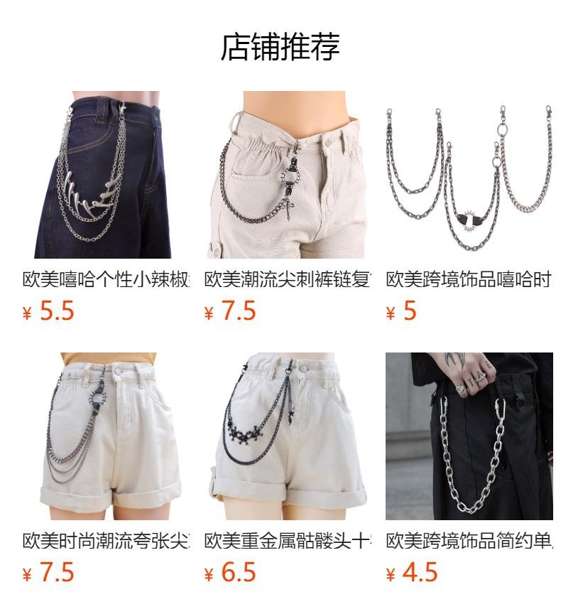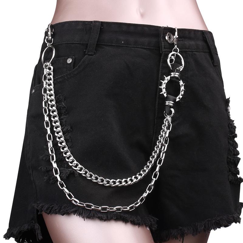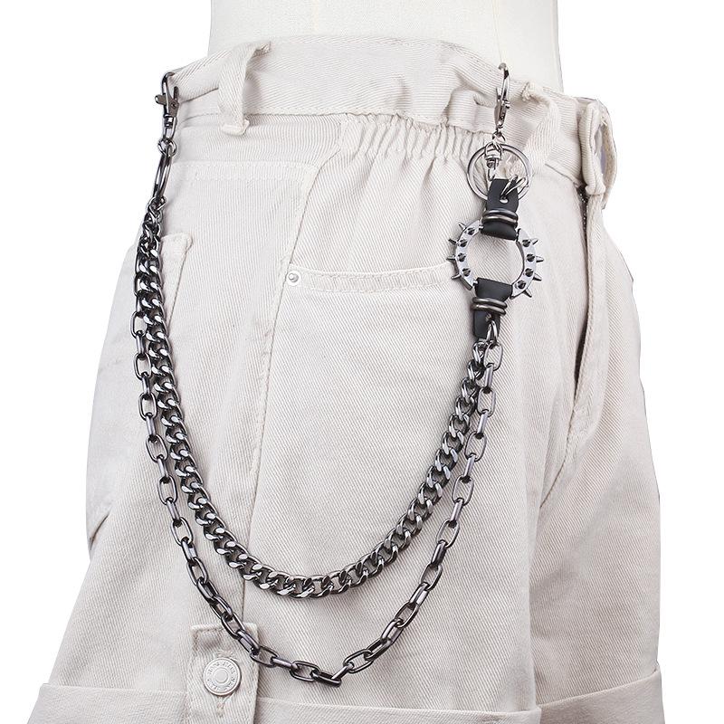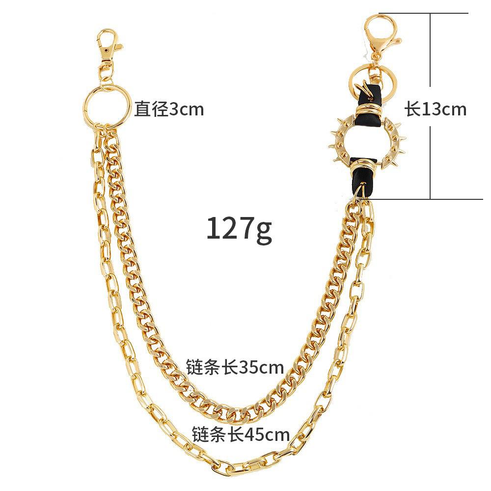 White K pointed pants chain, Gun black spiked pants chain, Golden spiked pants chain