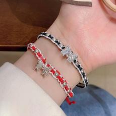 Pulseira de corda vermelha trançada com laço retrô para mulheres, simples e versátil, pulseira feminina, adequada para joias de mão como presente