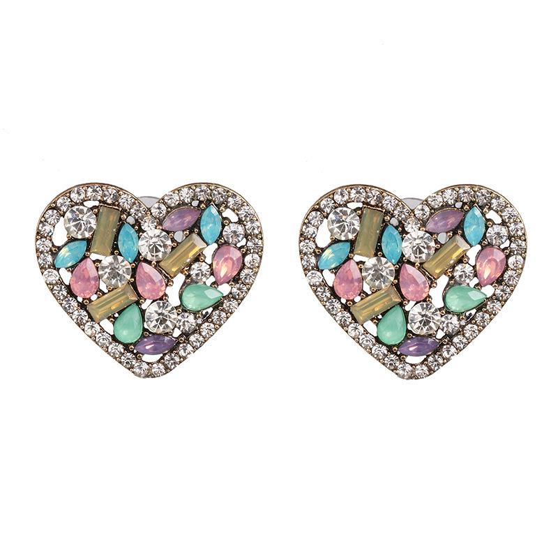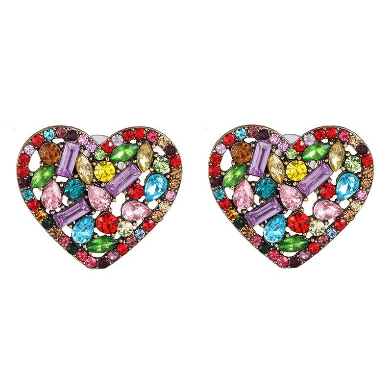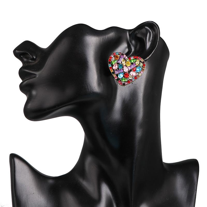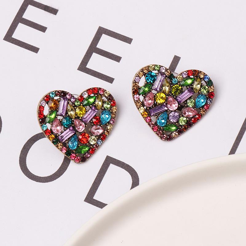 Brincos Coreanos, Europeus e Americanos Exagerados Coloridos de Cristal em Forma de Coração de Diamante Personalizados Design de Nicho de Luxo Leve