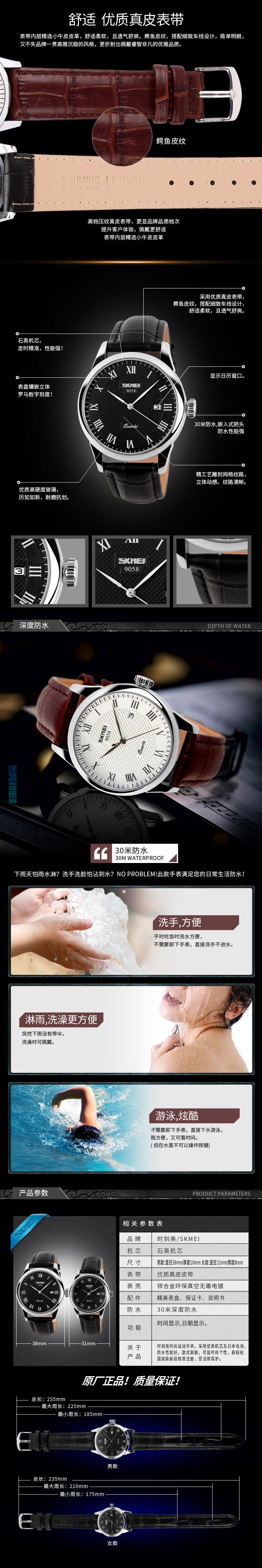 | Material | Caixa em liga de zinco, pulseira de couro, espelho de vidro espesso e endurecido, tampa inferior em aço inoxidável, fivela em aço inoxidável |