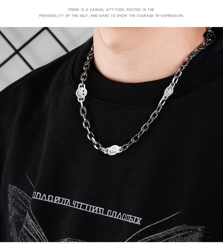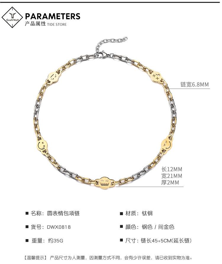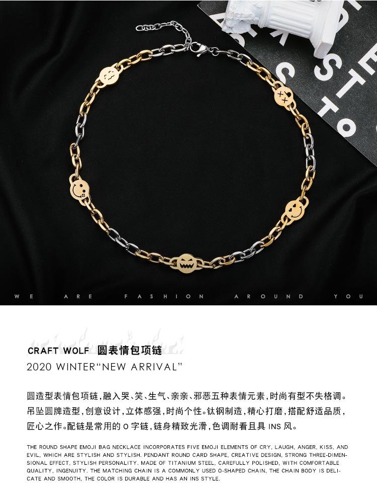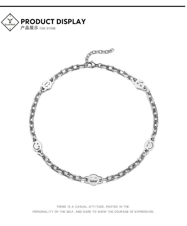 Maré Marca Expressão Redonda Bolsa Smiley Titanium Colar de Aço Maré Pessoas Colar Casal Hip Hop Colar Vento Frio Rua Clavícula Cadeia