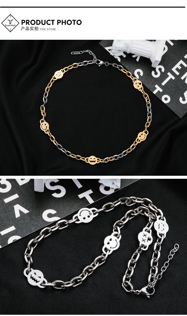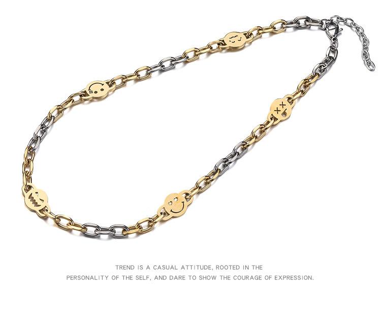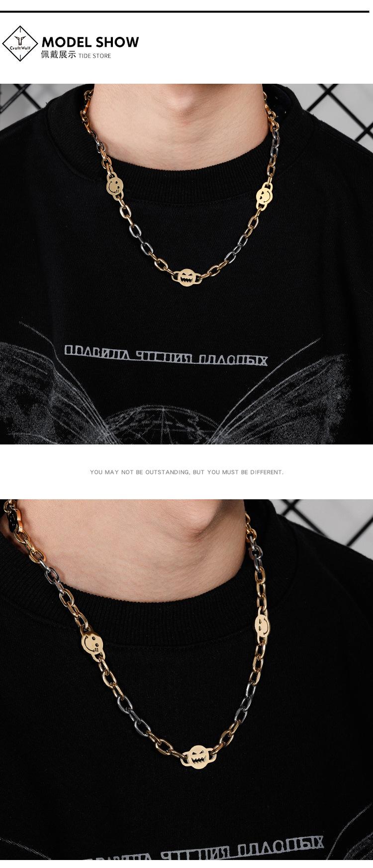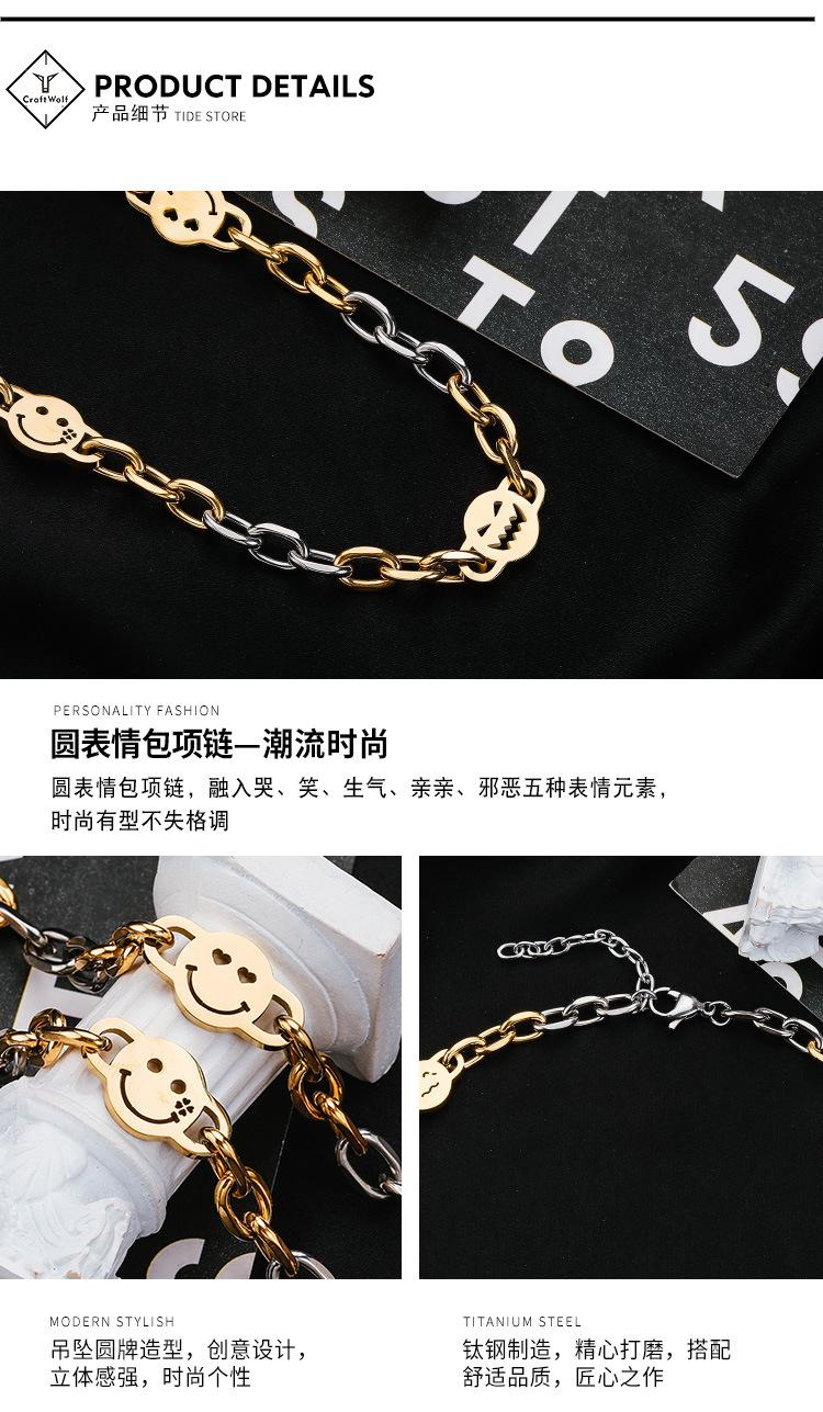 Maré Marca Expressão Redonda Bolsa Smiley Titanium Colar de Aço Maré Pessoas Colar Casal Hip Hop Colar Vento Frio Rua Clavícula Cadeia
