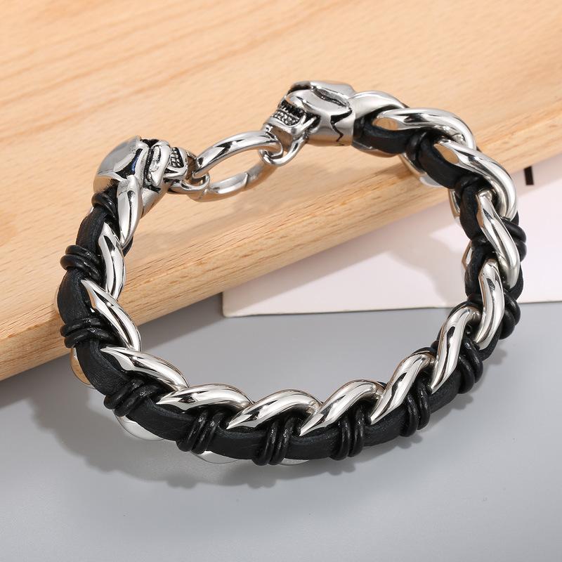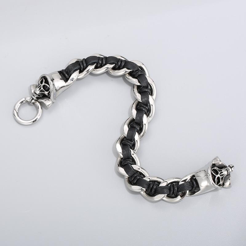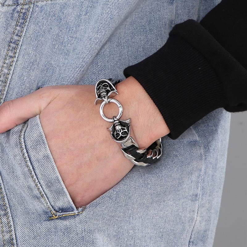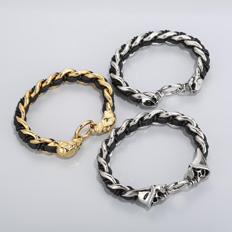 Nova tendência de moda joias tecidas de aço titânio fantasma pulseira de caveira de aço inoxidável masculina de personalidade europeia e americana