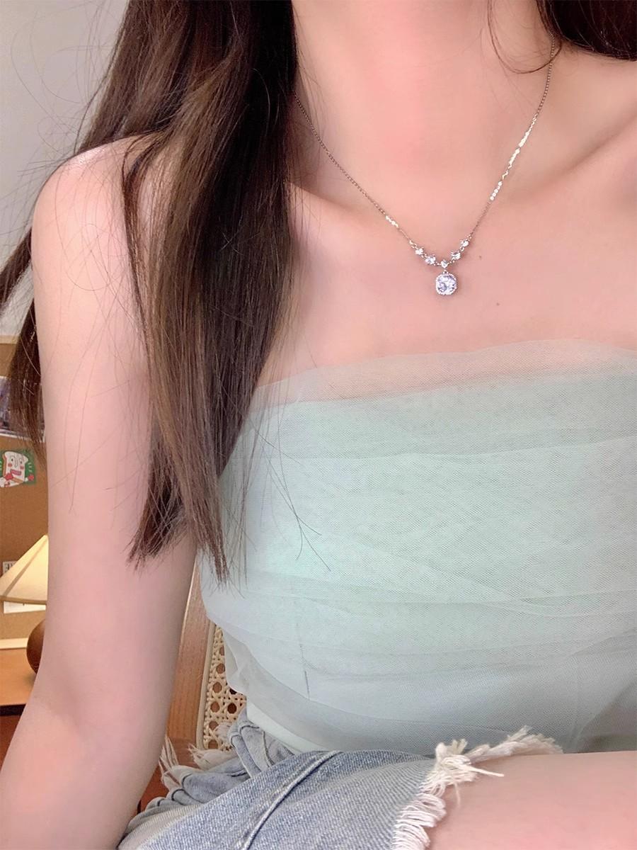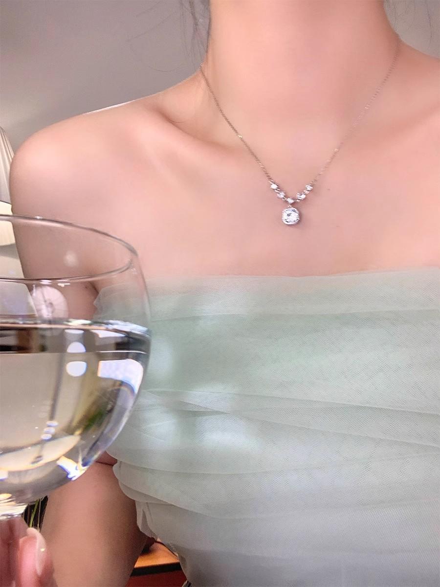Compre Colar de diamante quadrado de luxo leve para mulheres 2024 novo design de nicho cadeia de clavícula de alta qualidade requintado cadeia de suéter de outono e inverno de luxo leve no atacado no Joom.pro