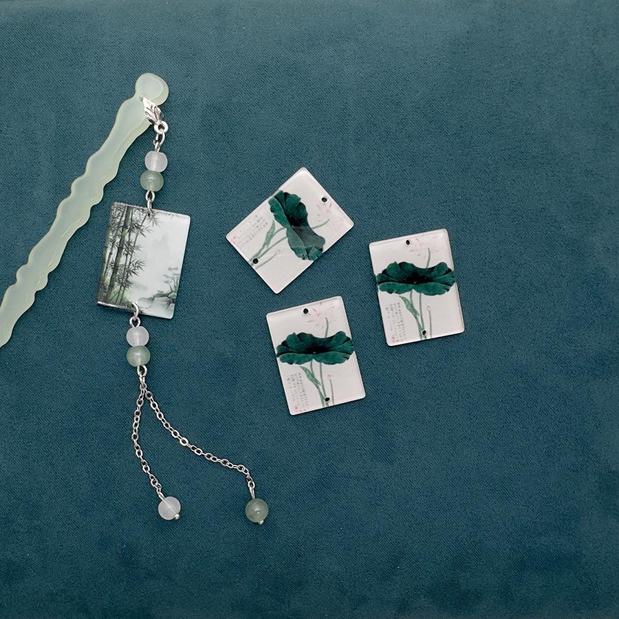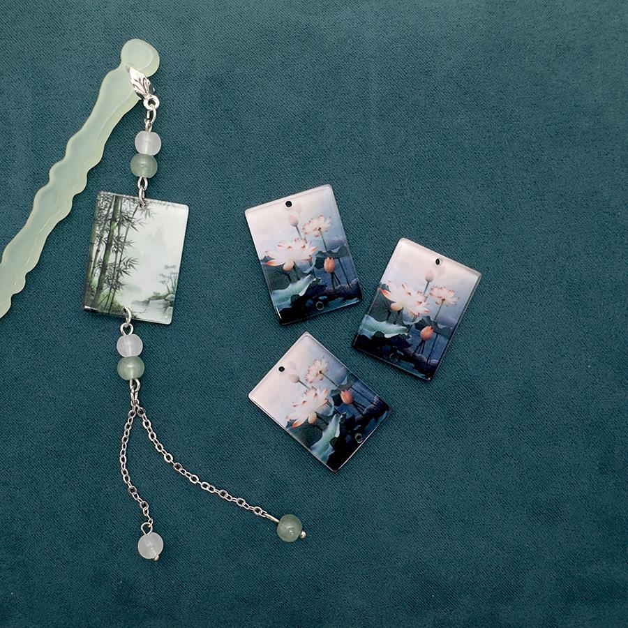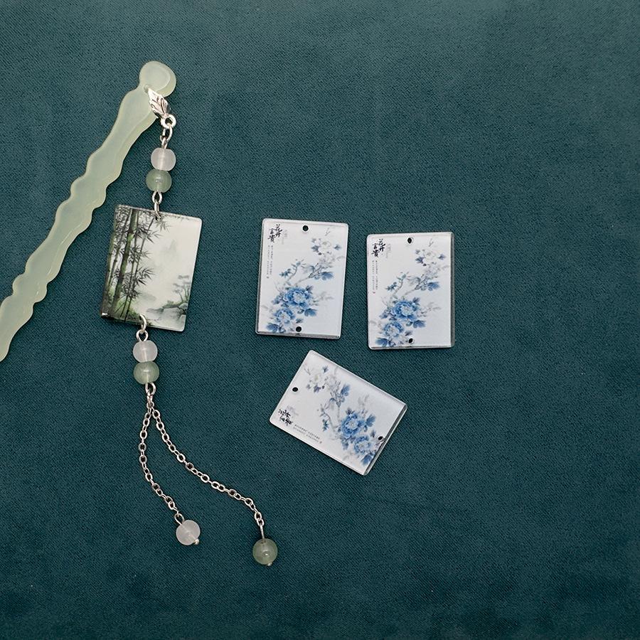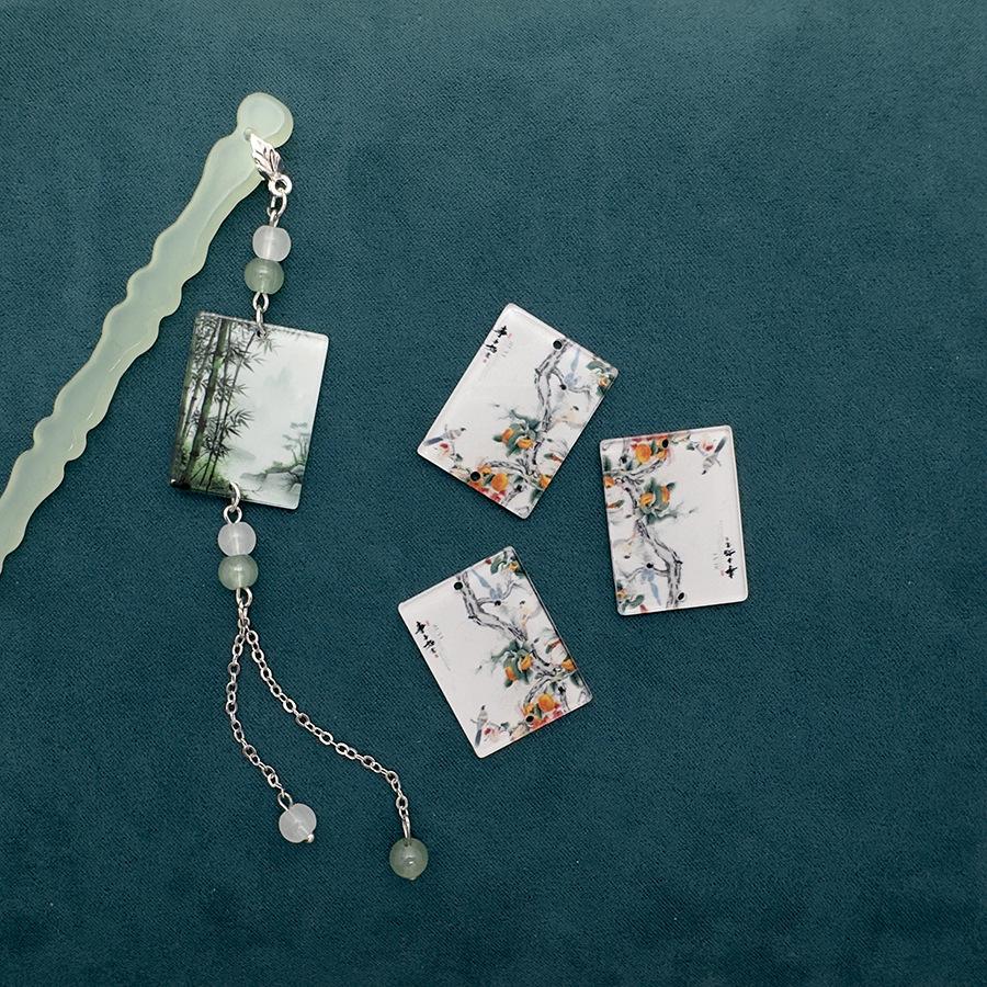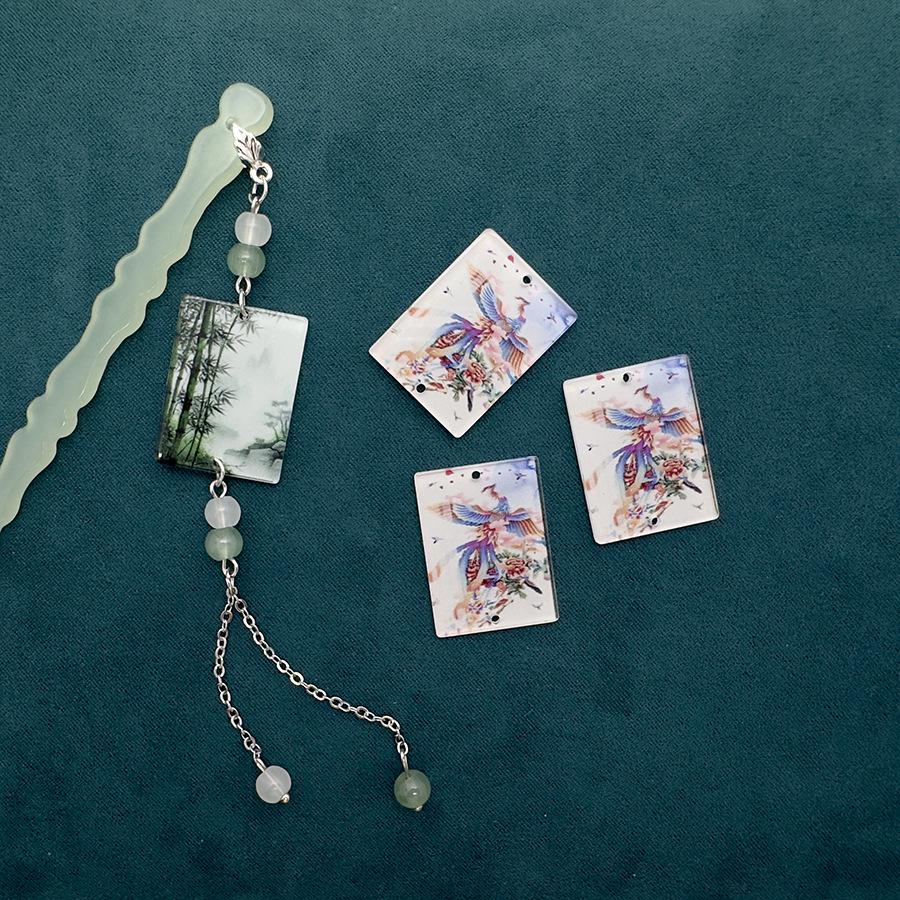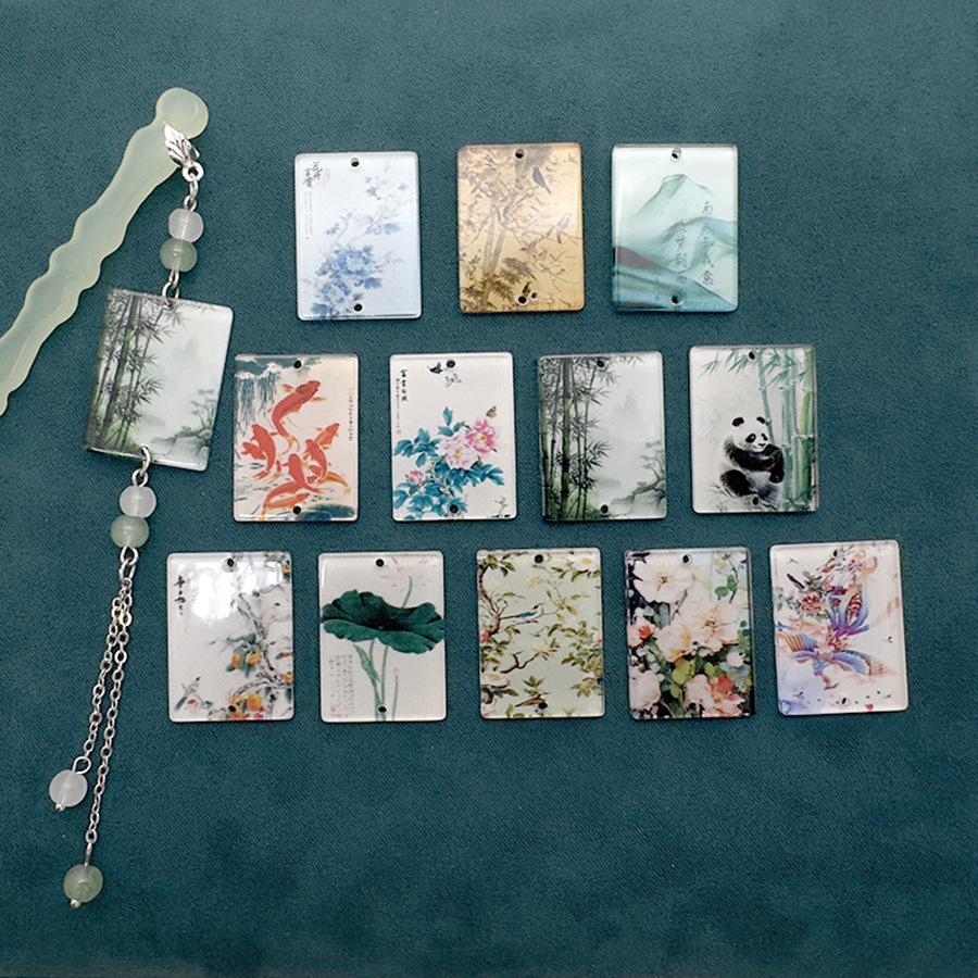 Novo Estilo Chinês Estilo Chinês Pintura e Caligrafia Dragão e Fênix Poesia Acrílico Duplo Furo Tab DIY Estilo Chinês Estilo Hairpin Grinaldas Cheongsam Acessórios