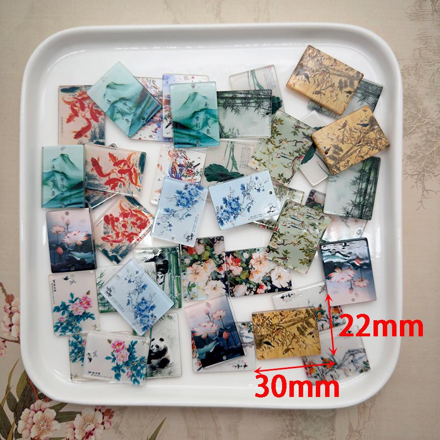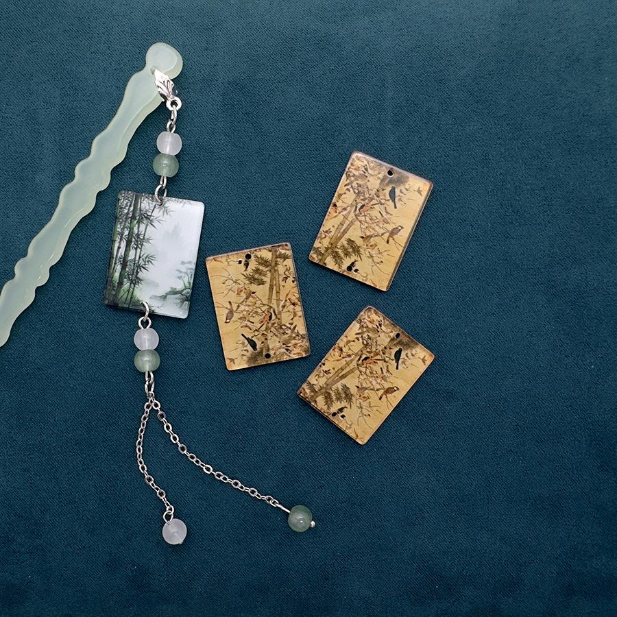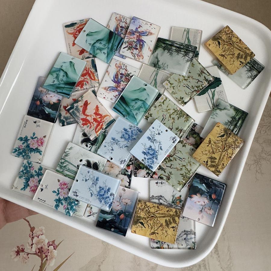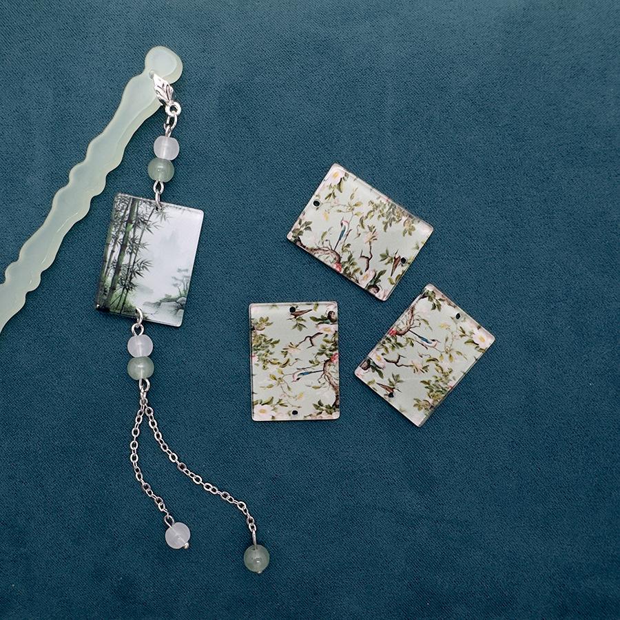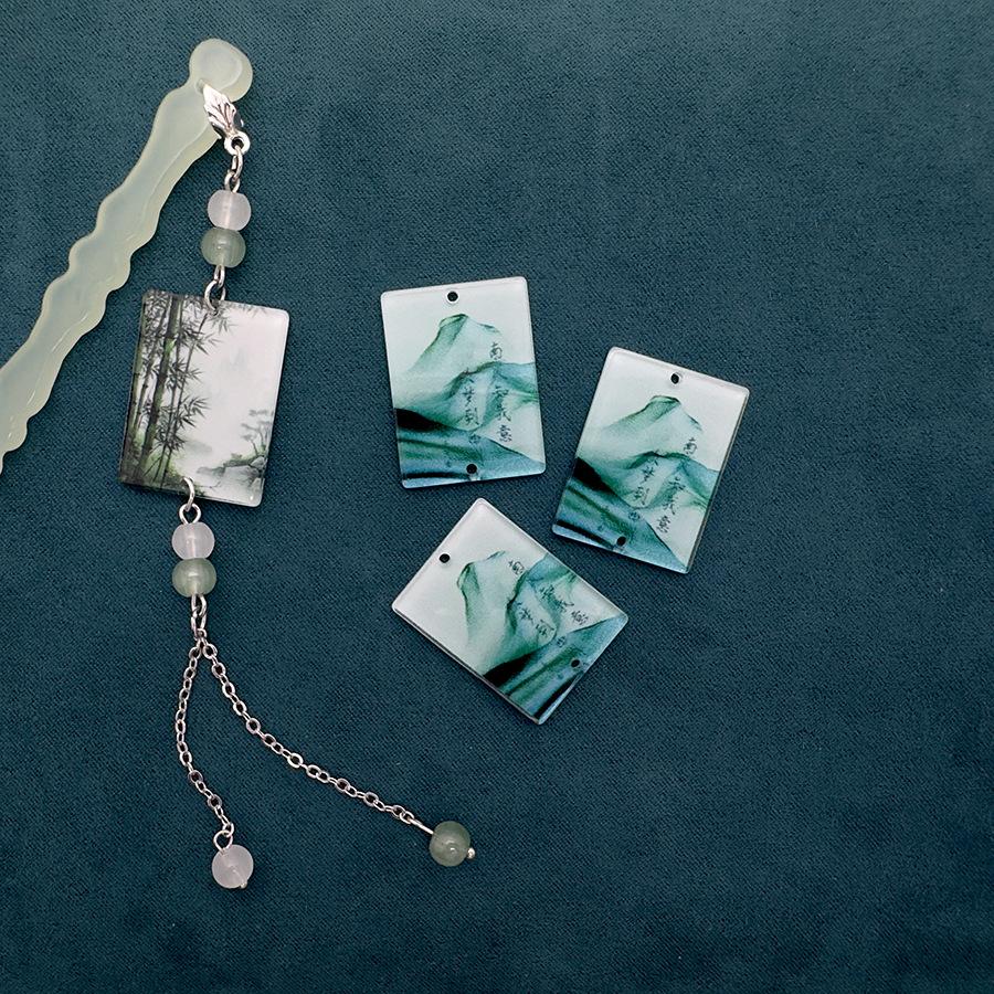Novo Estilo Chinês Estilo Chinês Pintura e Caligrafia Dragão e Fênix Poesia Acrílico Duplo Furo Tab DIY Estilo Chinês Estilo Hairpin Grinaldas Cheongsam Acessórios