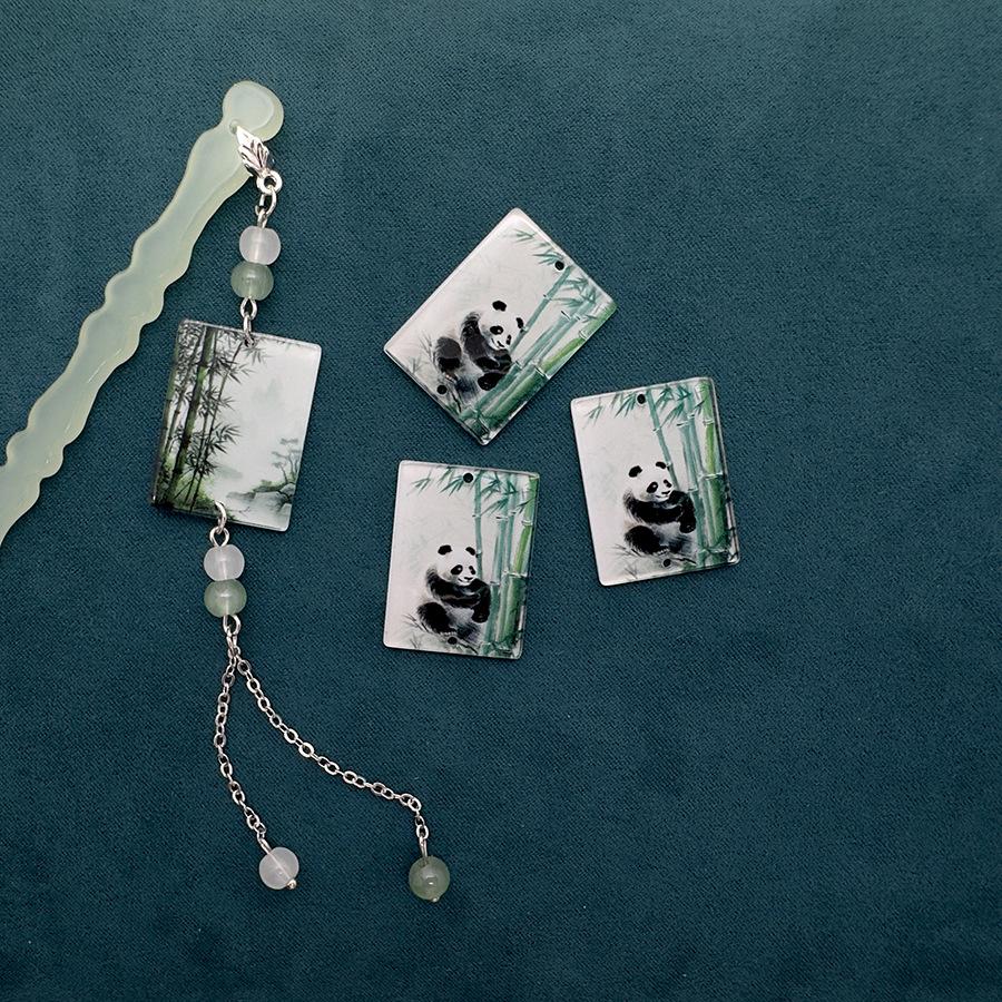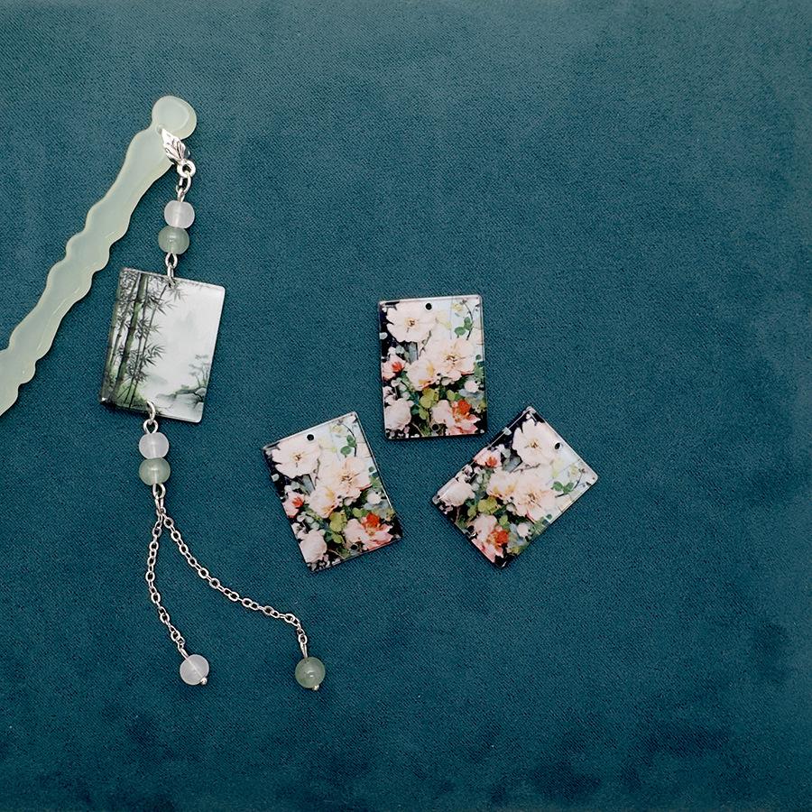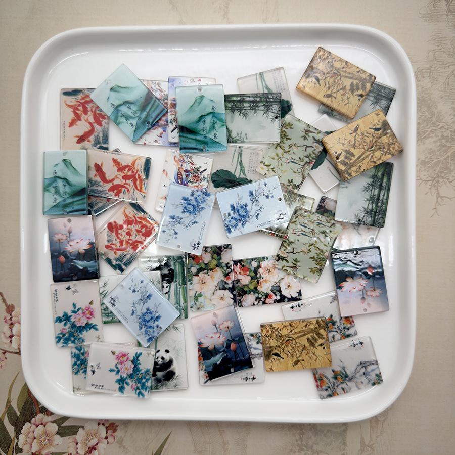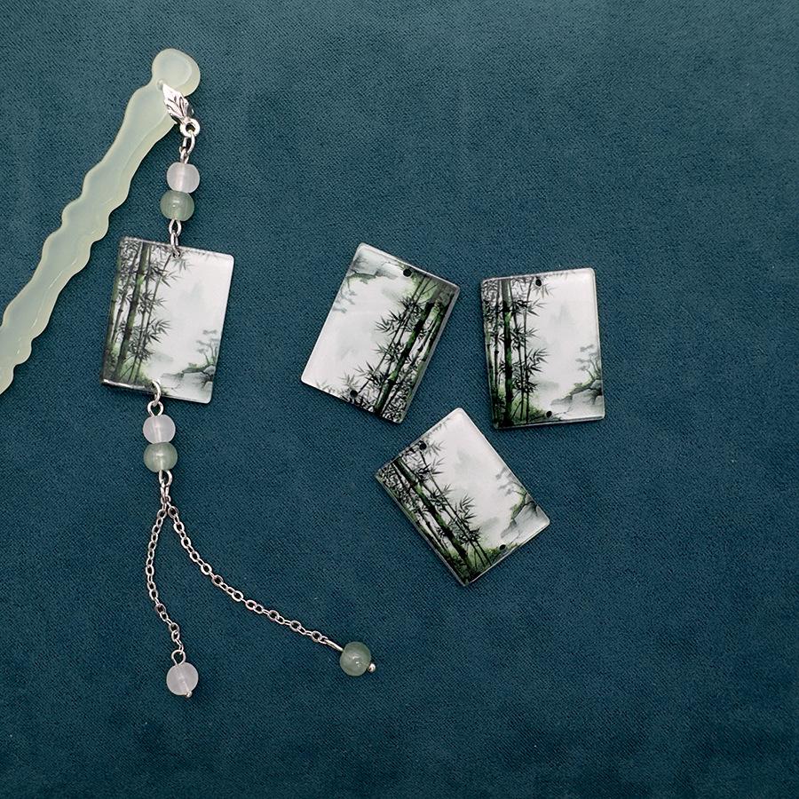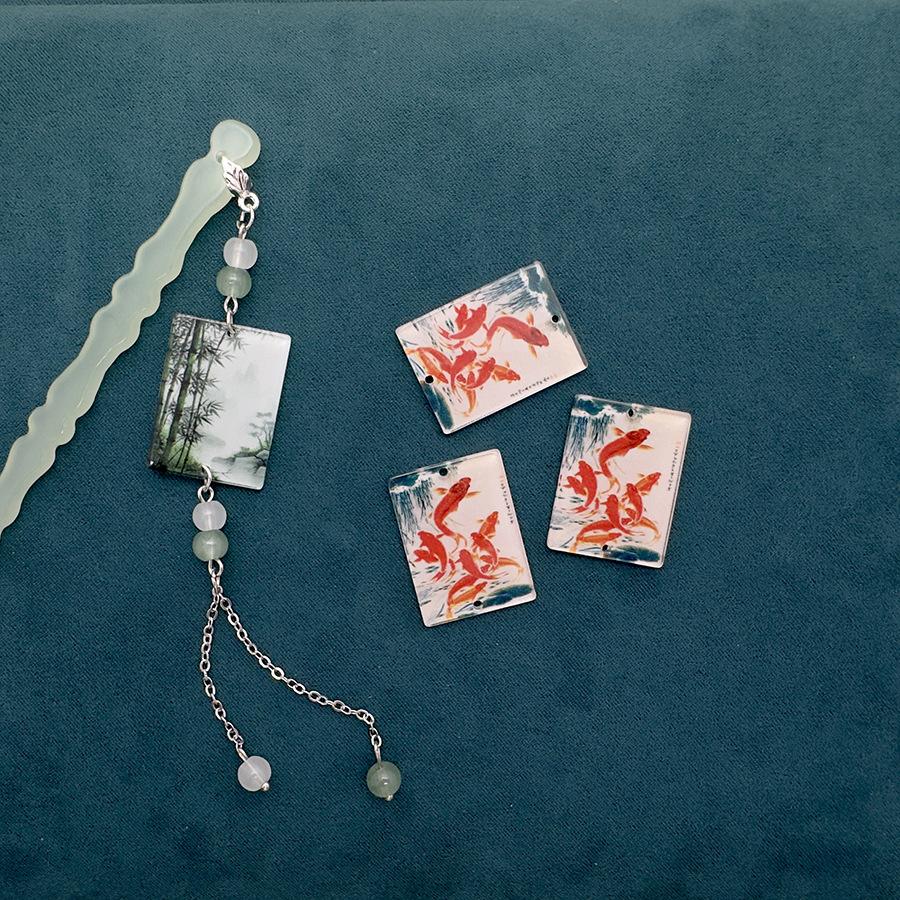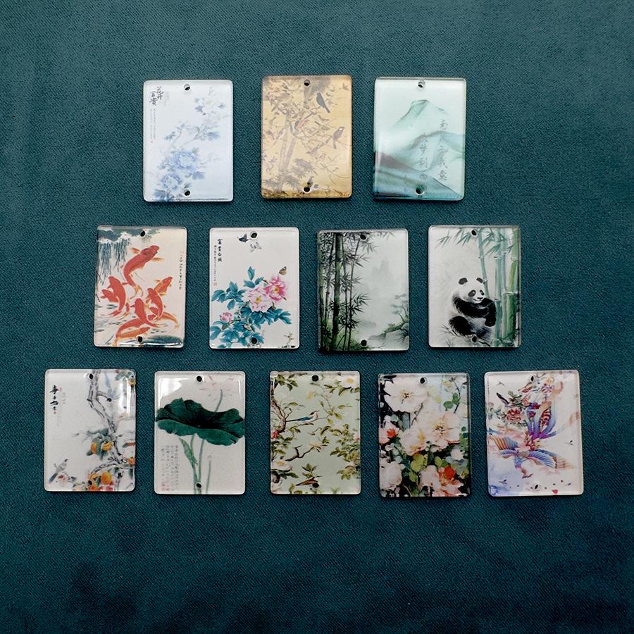 Novo Estilo Chinês Estilo Chinês Pintura e Caligrafia Dragão e Fênix Poesia Acrílico Duplo Furo Tab DIY Estilo Chinês Estilo Hairpin Grinaldas Cheongsam Acessórios