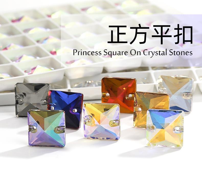 Atacado Transfronteiriço Quadrada Fivela Plana Bolsa Vestido Vestido de Noiva Embalagem Independente Anti-Arranhões Solado Rasteiro Strass Costurados à Mão
