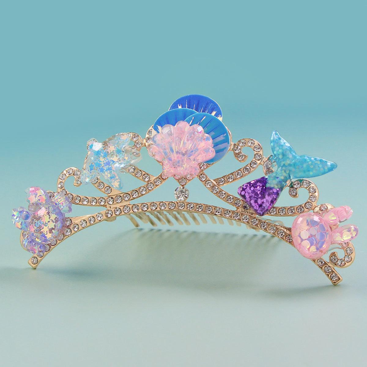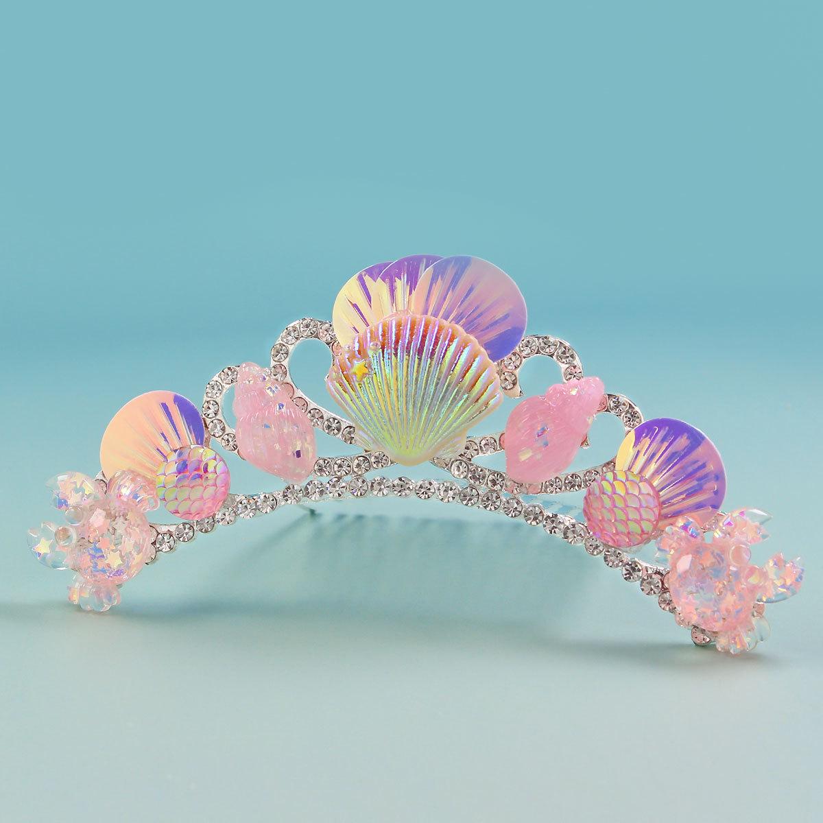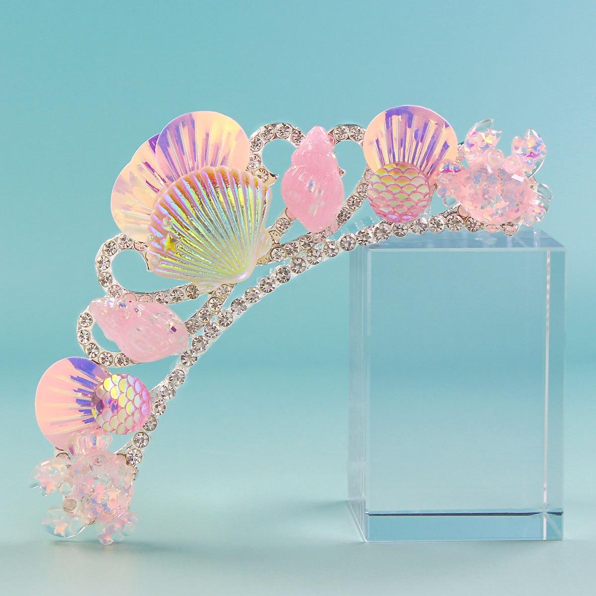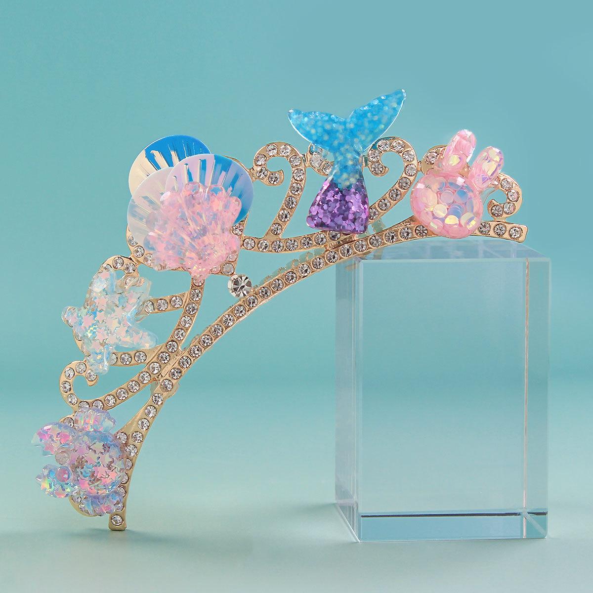 Princesa Coroa Headwear Aniversário Hairband Sereia Princesa Grampo de Cabelo Desempenho Infantil Oceano Vento Acessórios de Cabelo Acessórios de Vestido