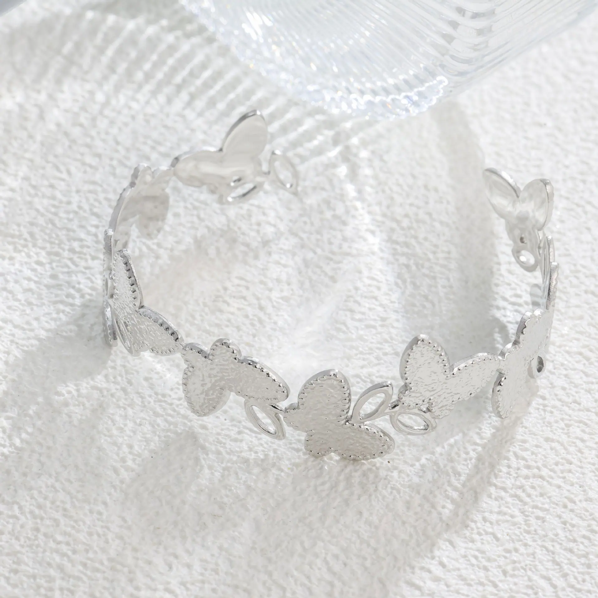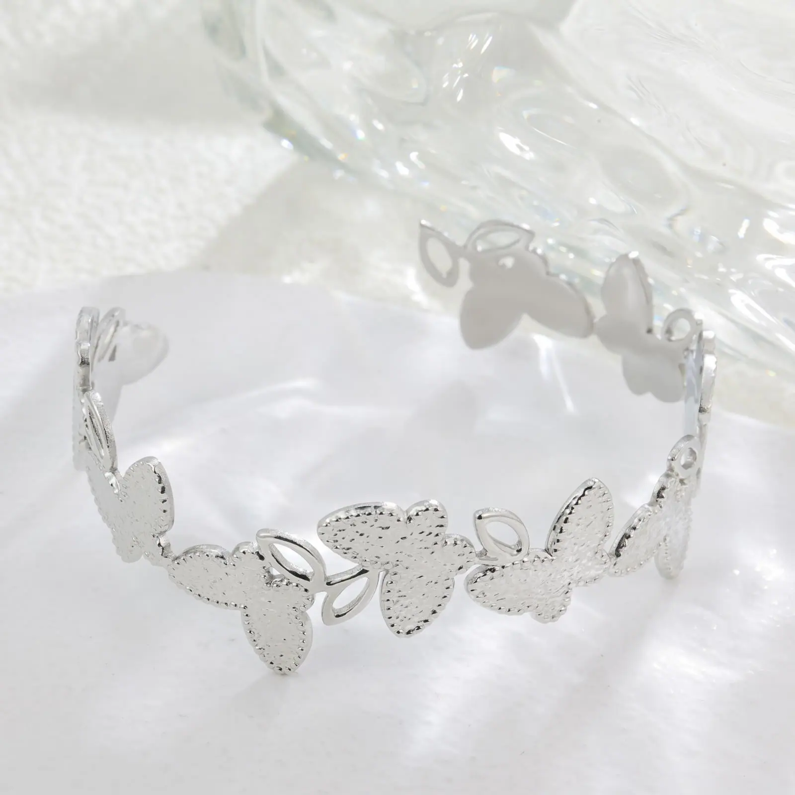 Pulseira de abertura de borboleta oca com design de temperamento japonês e coreano, pulseira de aço de titânio popular da moda, sem cor, atacado, tudo combina