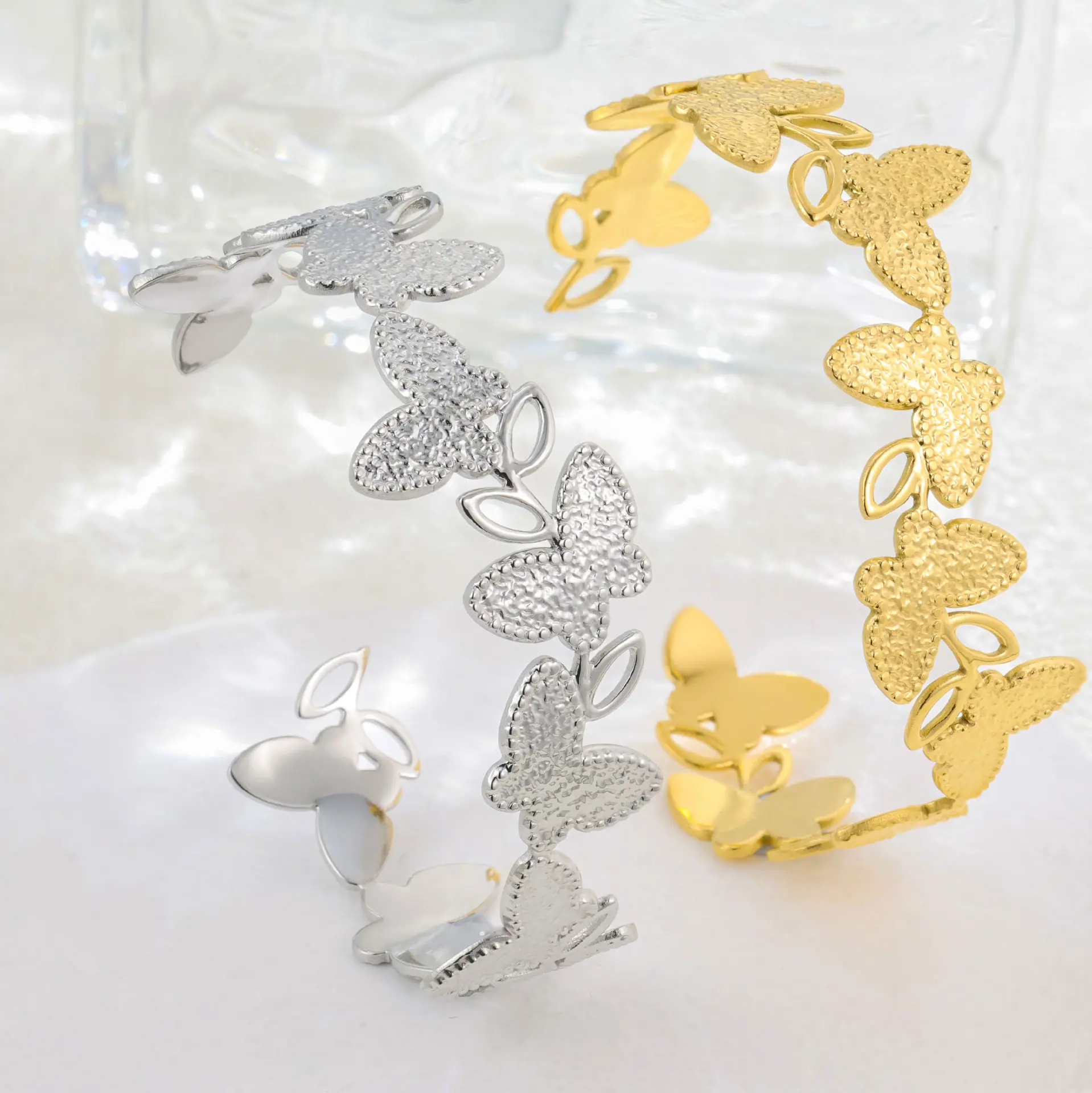 D186 butterfly opening bracelet gold, D186 butterfly open bracelet silver