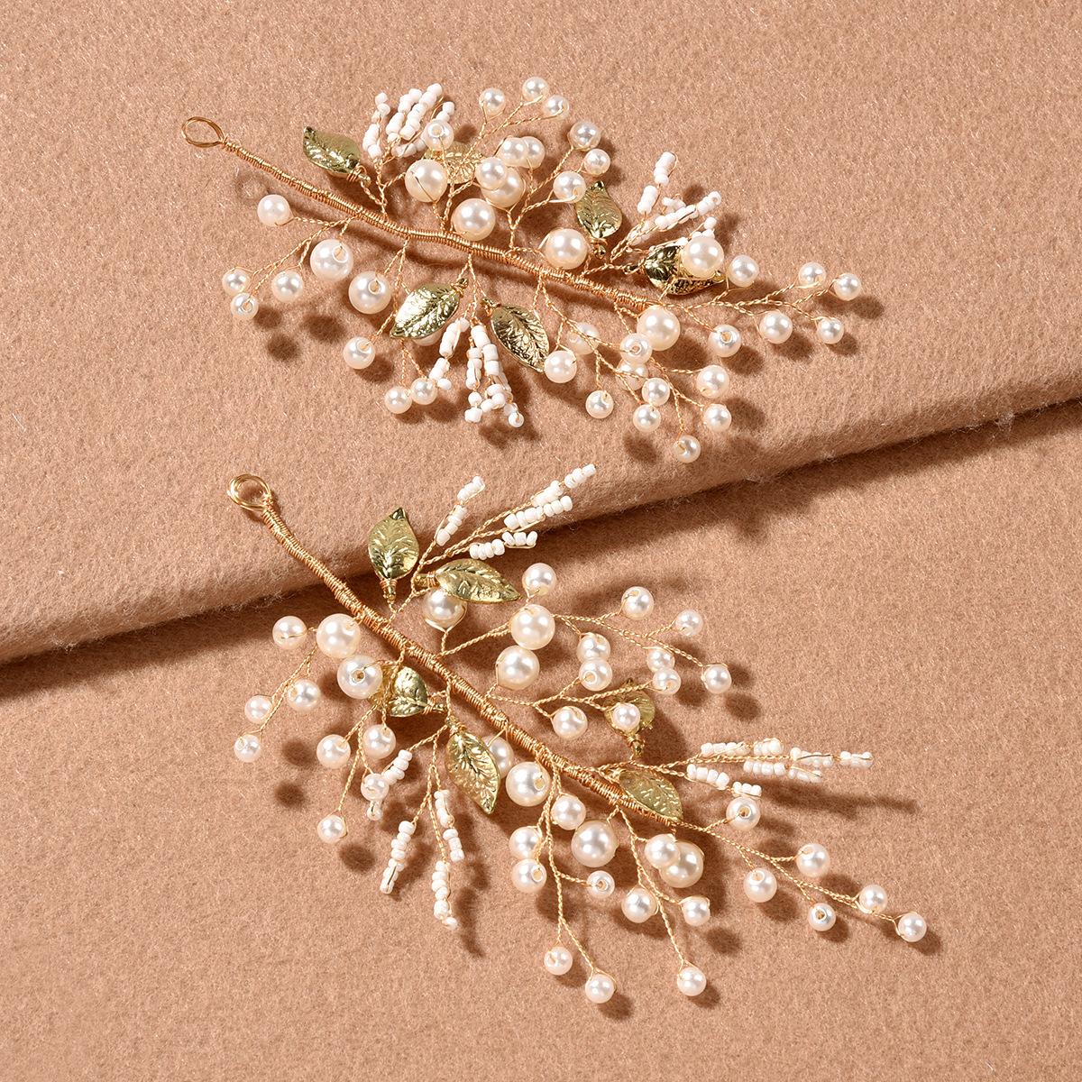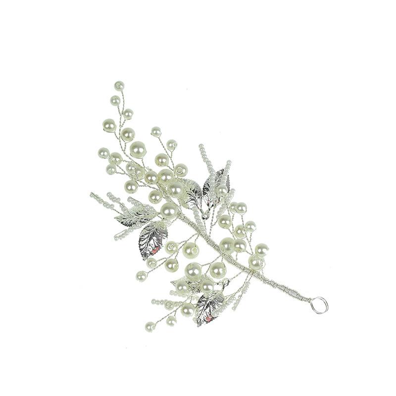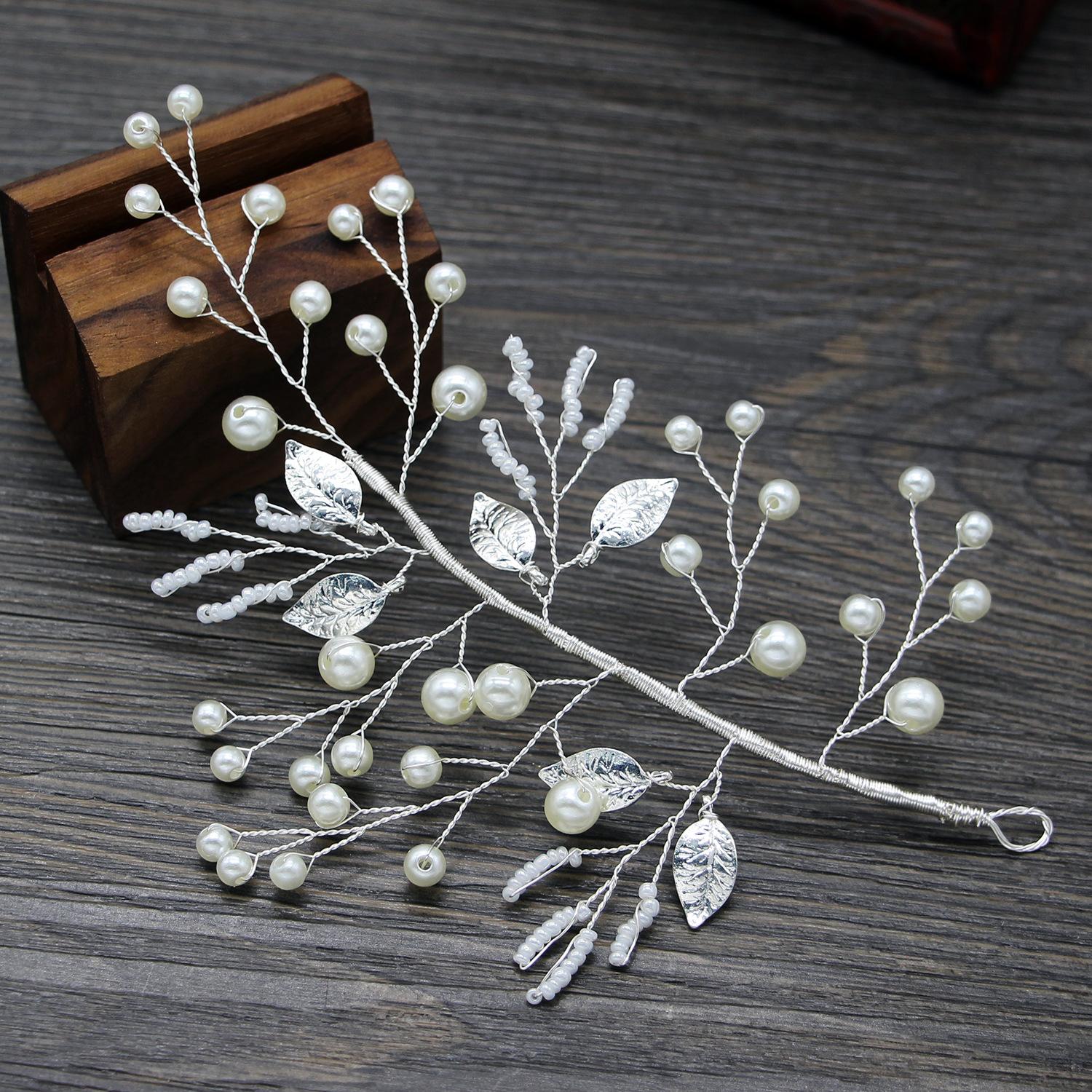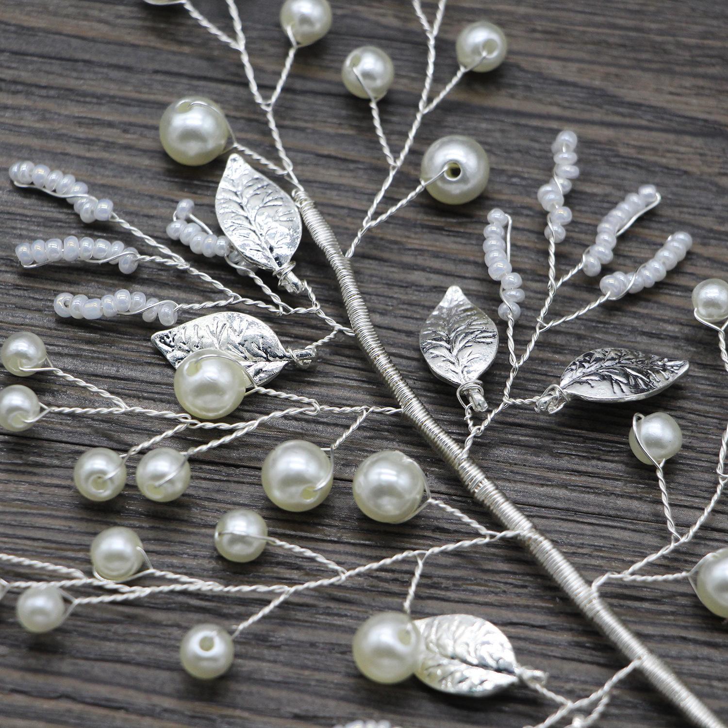Acessórios para cabelo de noiva coreana, acessórios para cabelo lateral, lindas folhas de árvore prateadas, pérolas, flores, orelha, vestido de noiva simples, acessórios para cabelo