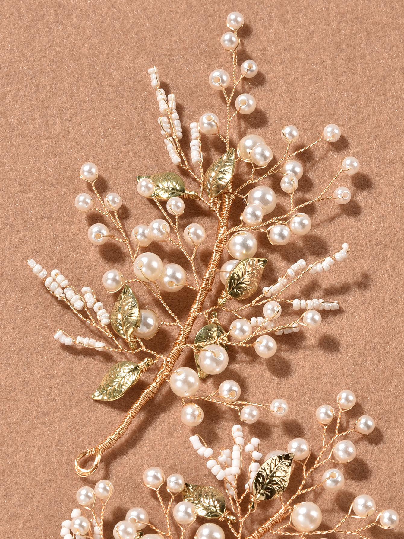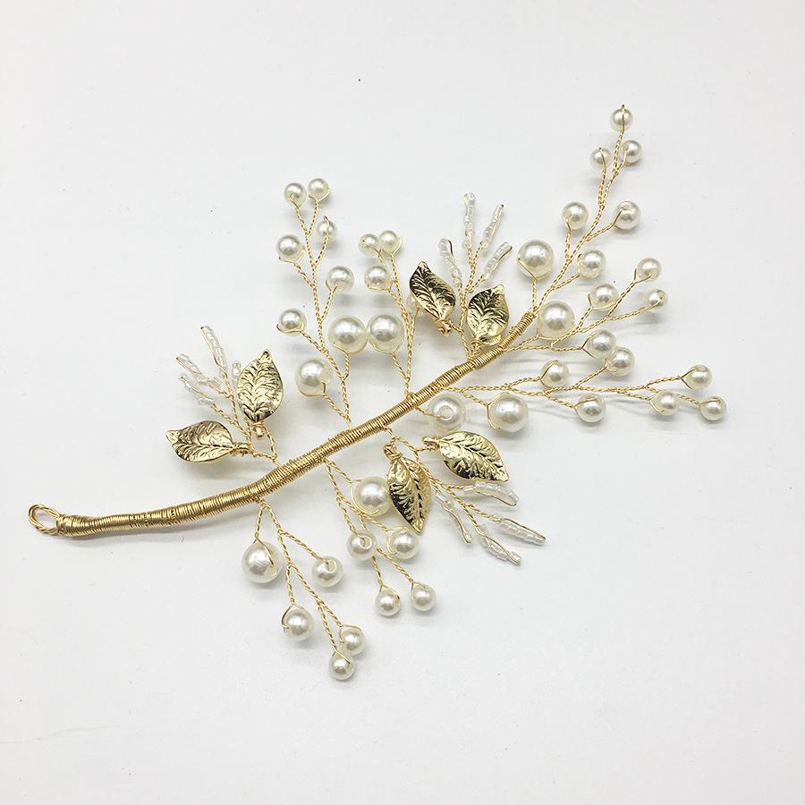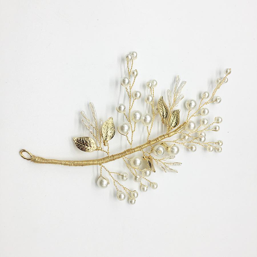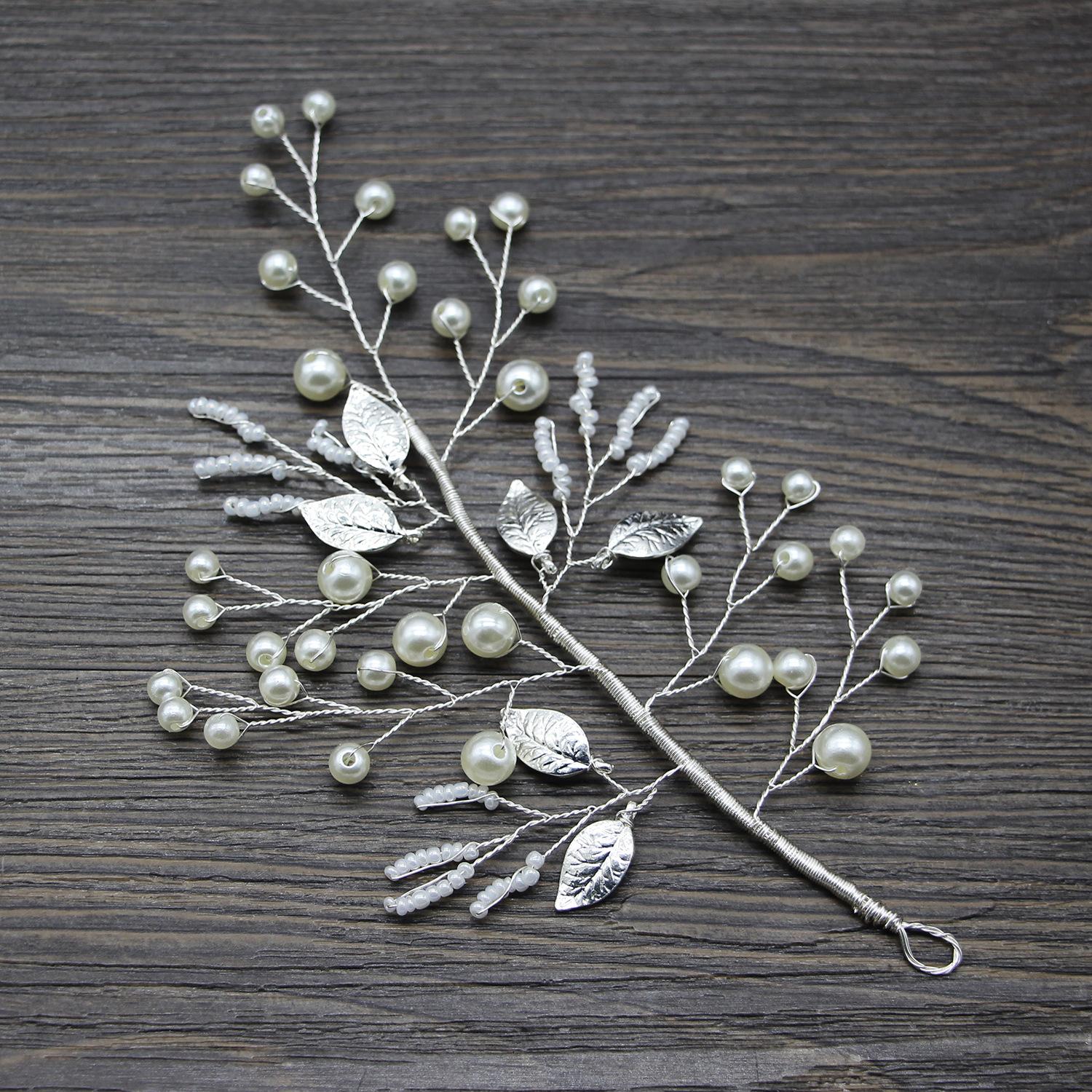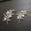 Acessórios para cabelo de noiva coreana, acessórios para cabelo lateral, lindas folhas de árvore prateadas, pérolas, flores, orelha, vestido de noiva simples, acessórios para cabelo