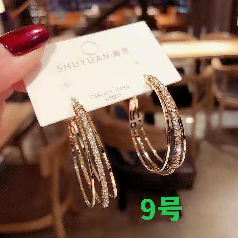 Brincos de Argola Personalizados com Diamantes e Agulha de Prata S925 para Mulheres, Brincos de Estilo Geométrico Modernos e Versáteis