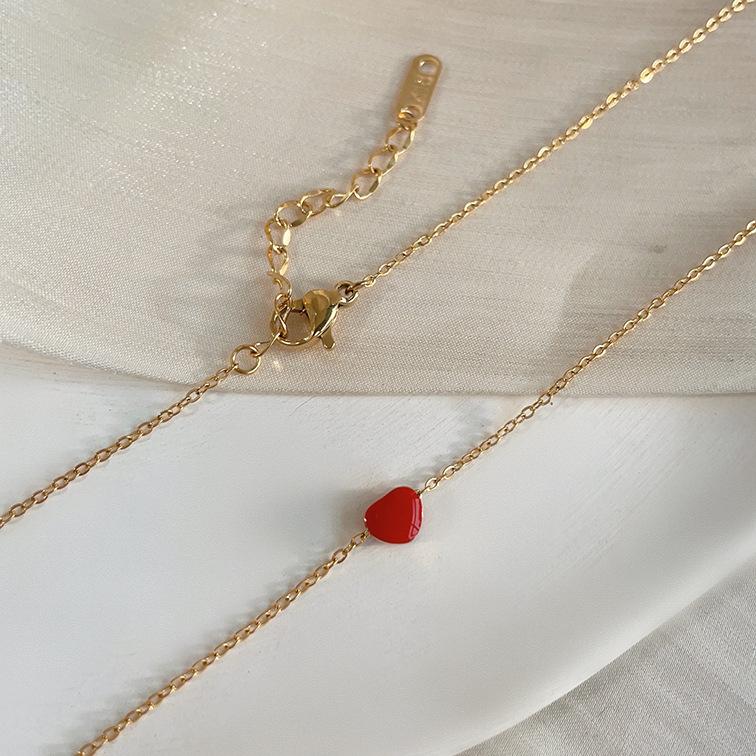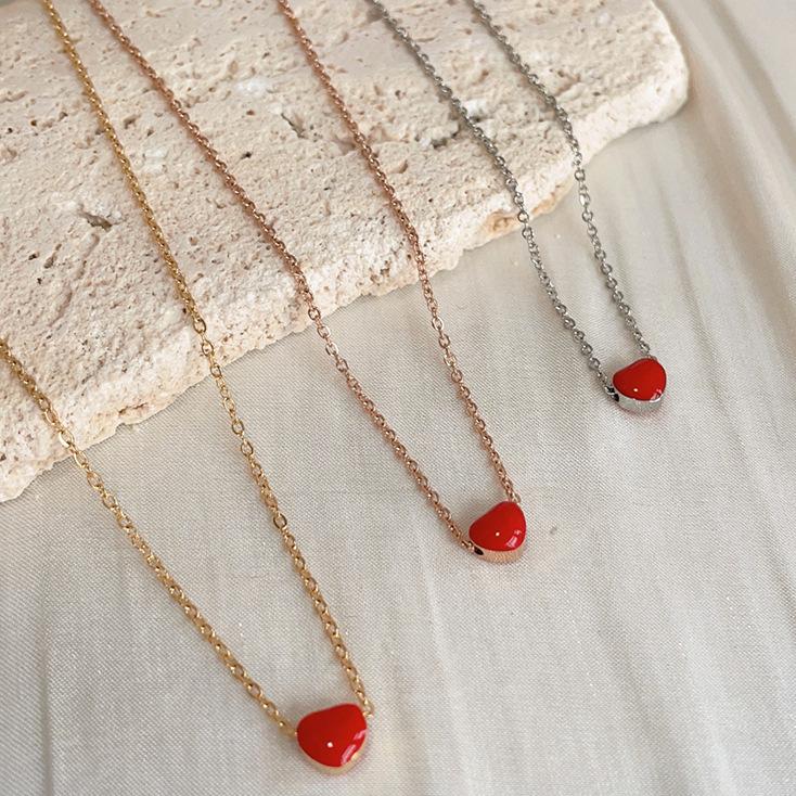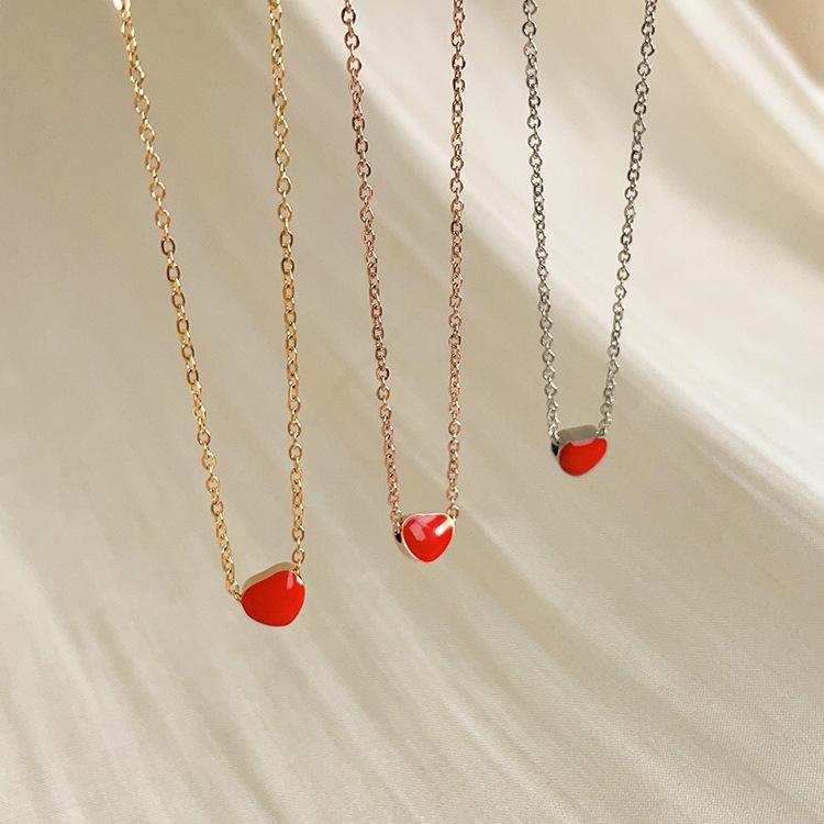 Colar de óleo com gota de amor em formato de coração vermelho, colar de aço titânio em ouro rosa que não desbota, atacado