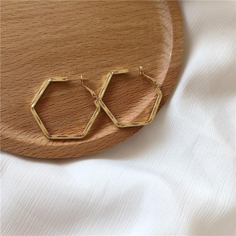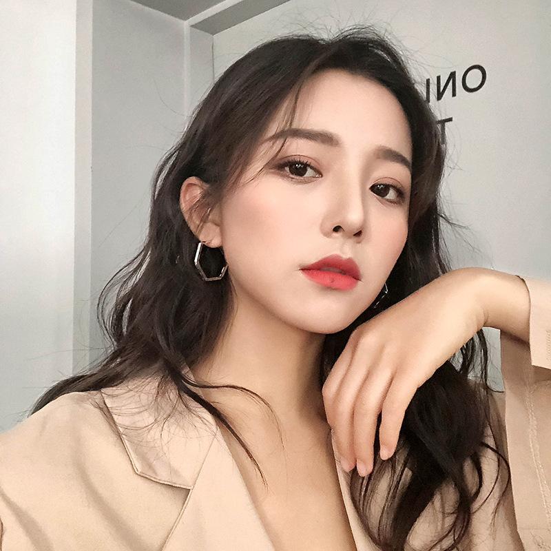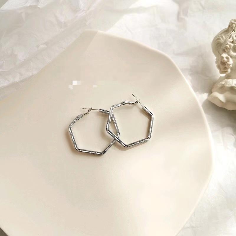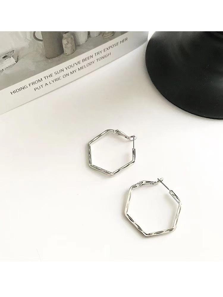 Coreia do Sul Internet celebridade geométrica hexagonal círculo exagerado fivela de orelha s925 prata agulha simples elegante moda elegante brincos para mulheres