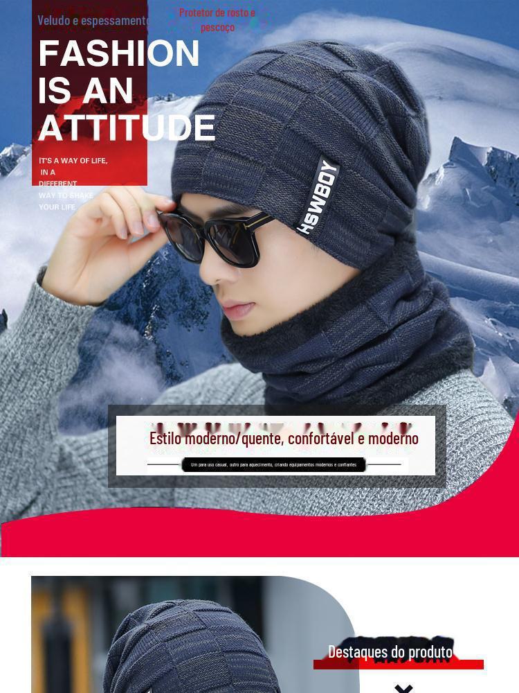 Chapéu de inverno masculino quente engrossado lã forrada chapéu de lã coreano moda masculina cross-border outono e inverno chapéu de malha inverno atacado