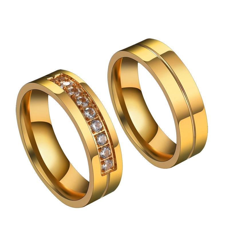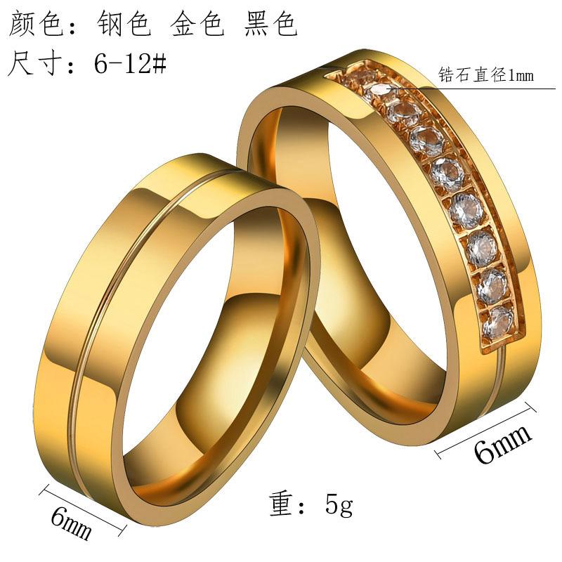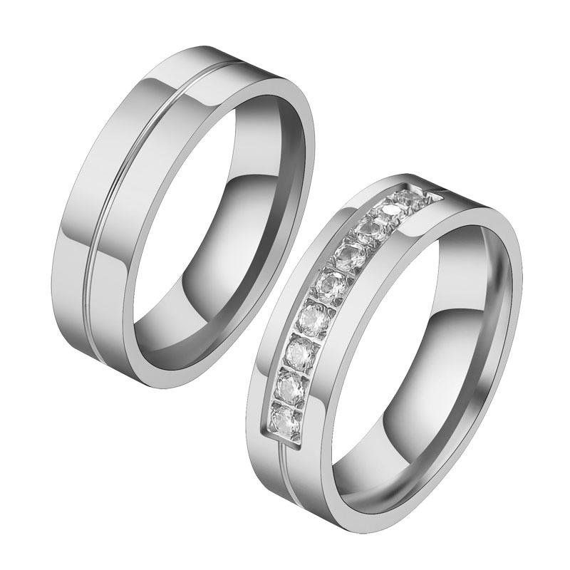 Jóias Novas Europeias e Americanas Anel de Aço Inoxidável Estilo Casal Diamante Zircônia 6mm Fashionável Pode Ser Gravado Fabricante Atacado