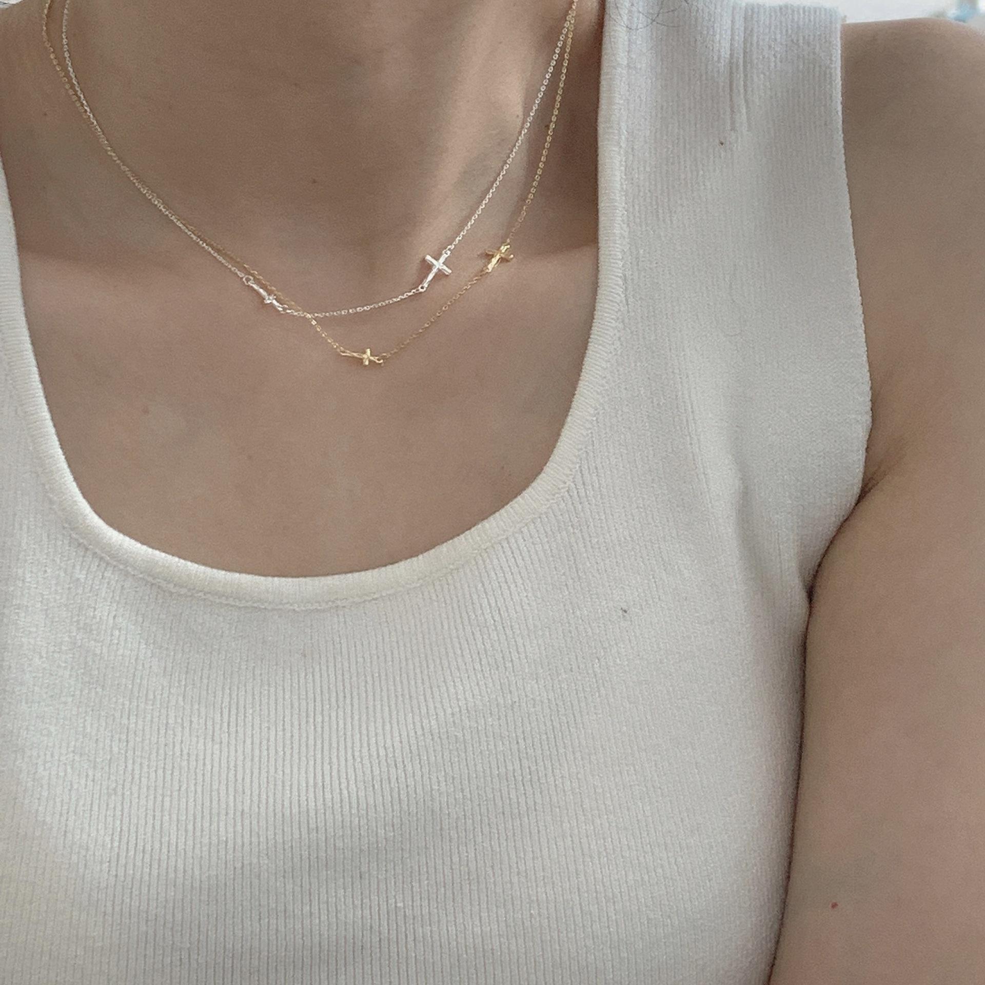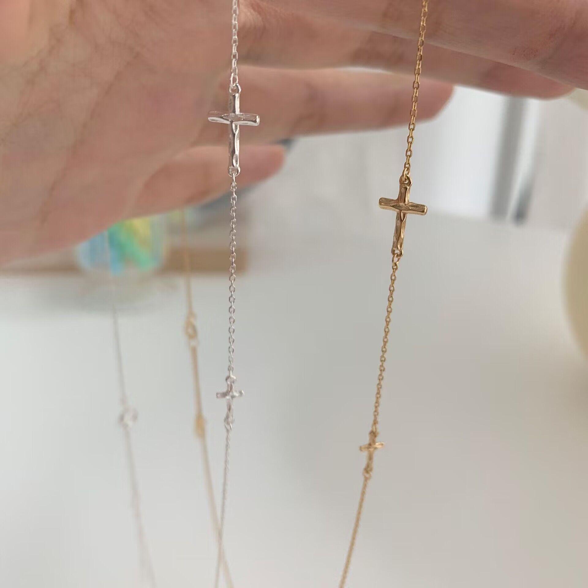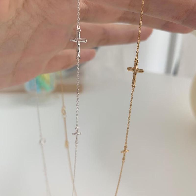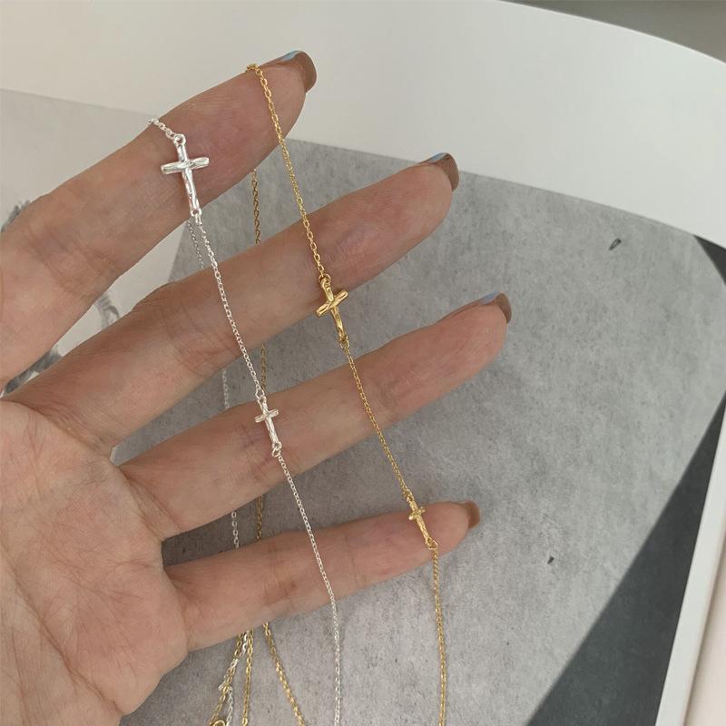 S925 prata esterlina nicho simples empilhado colar das mulheres plissado cruz de alta qualidade estilo frio clavícula cadeia elegante colar