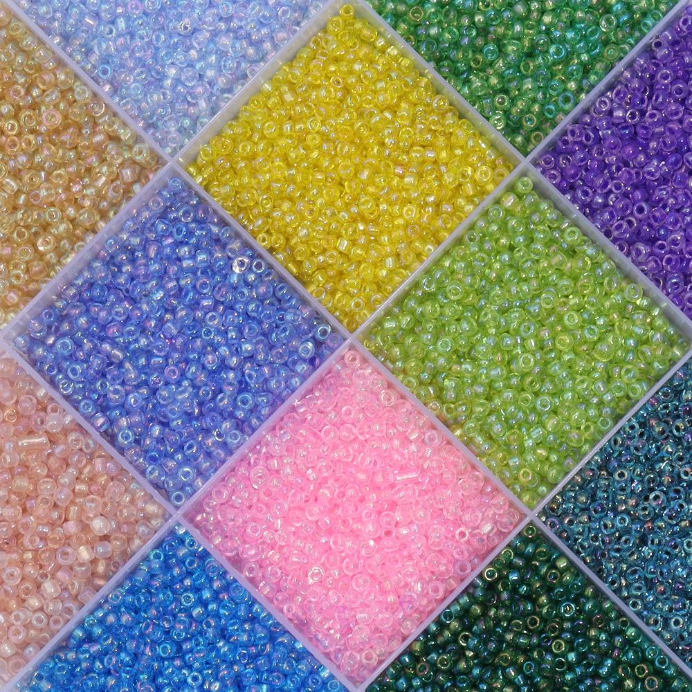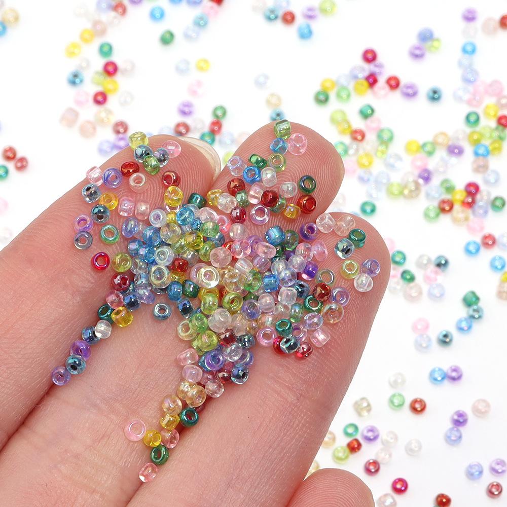 Contas de arroz de vidro transparente revestidas com AB em uma garrafa, diâmetro de cerca de 2 mm, tamanho de poro de cerca de 0,8 mm (cerca de 1230 contas) Garrafa de encaixe comprimento 66 mm largura 18 mm |