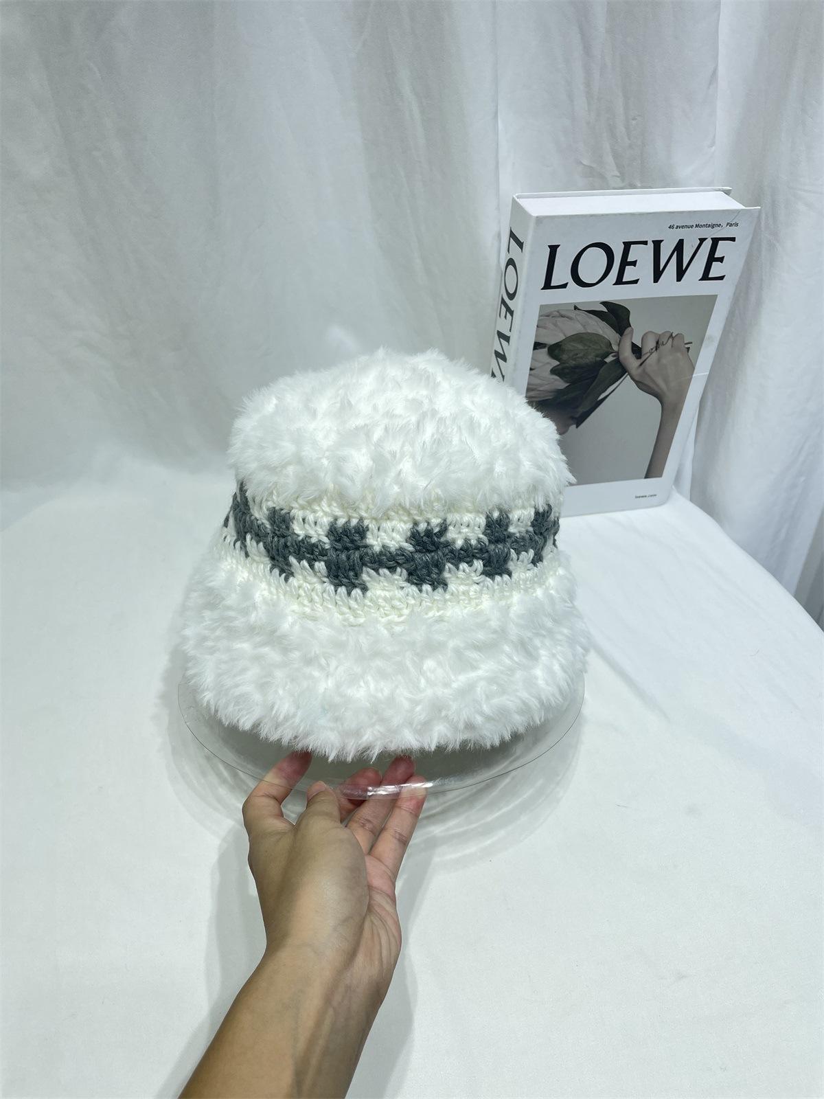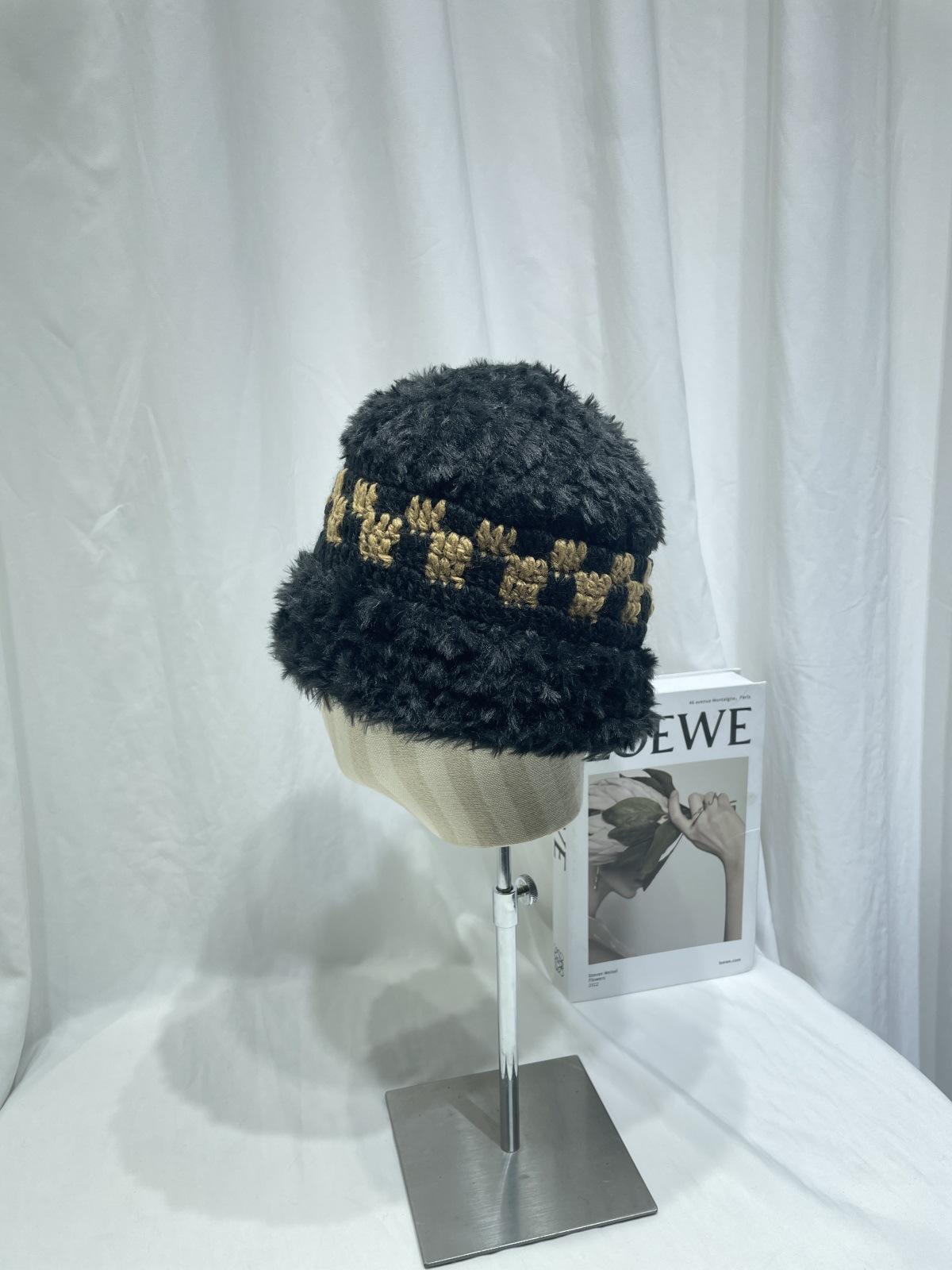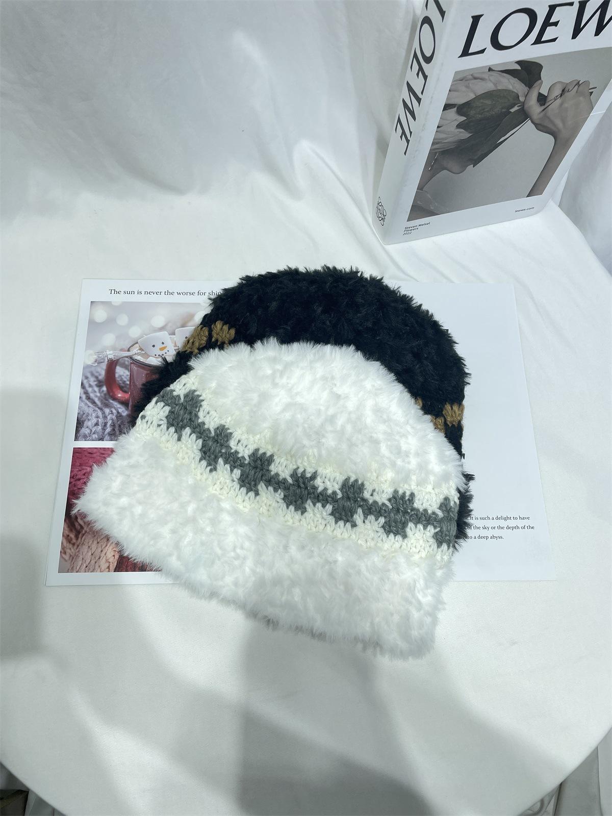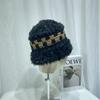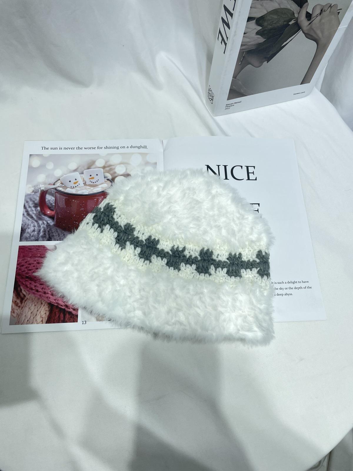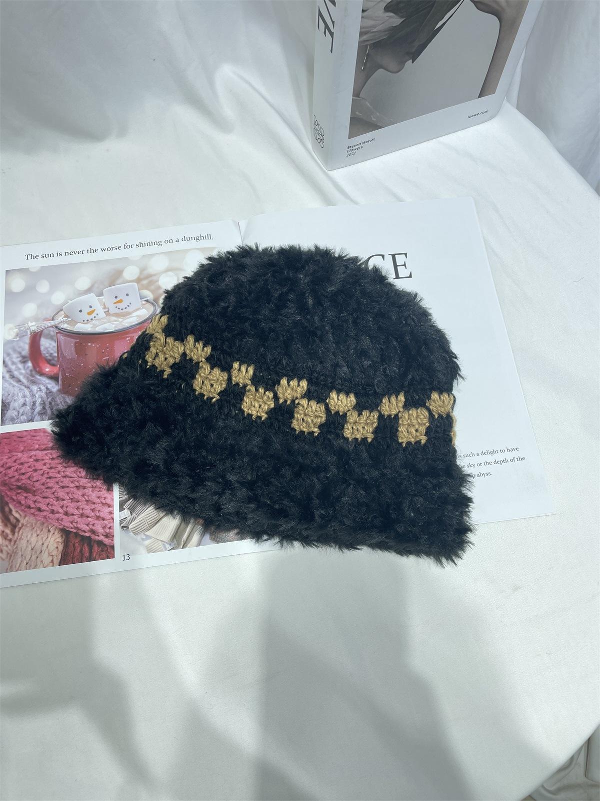 Estilo japonês simples contraste cor de pelúcia costura de malha chapéu de pescador feminino outono e inverno rosto olhando pequeno chapéu de bacia de lã chapéu de balde quente