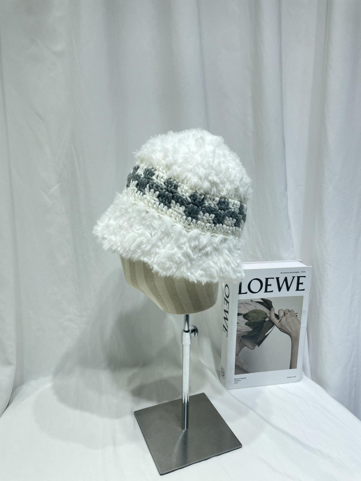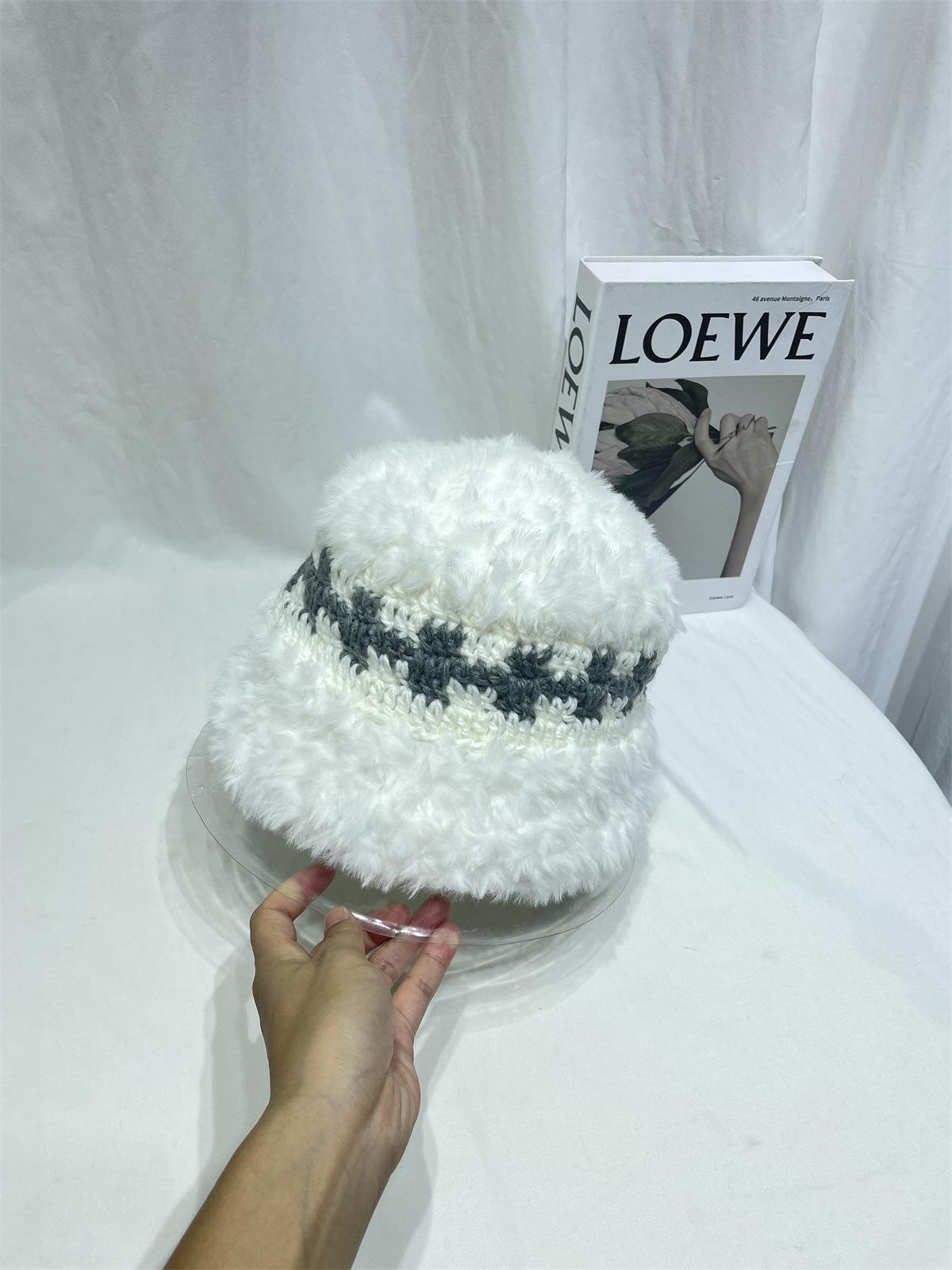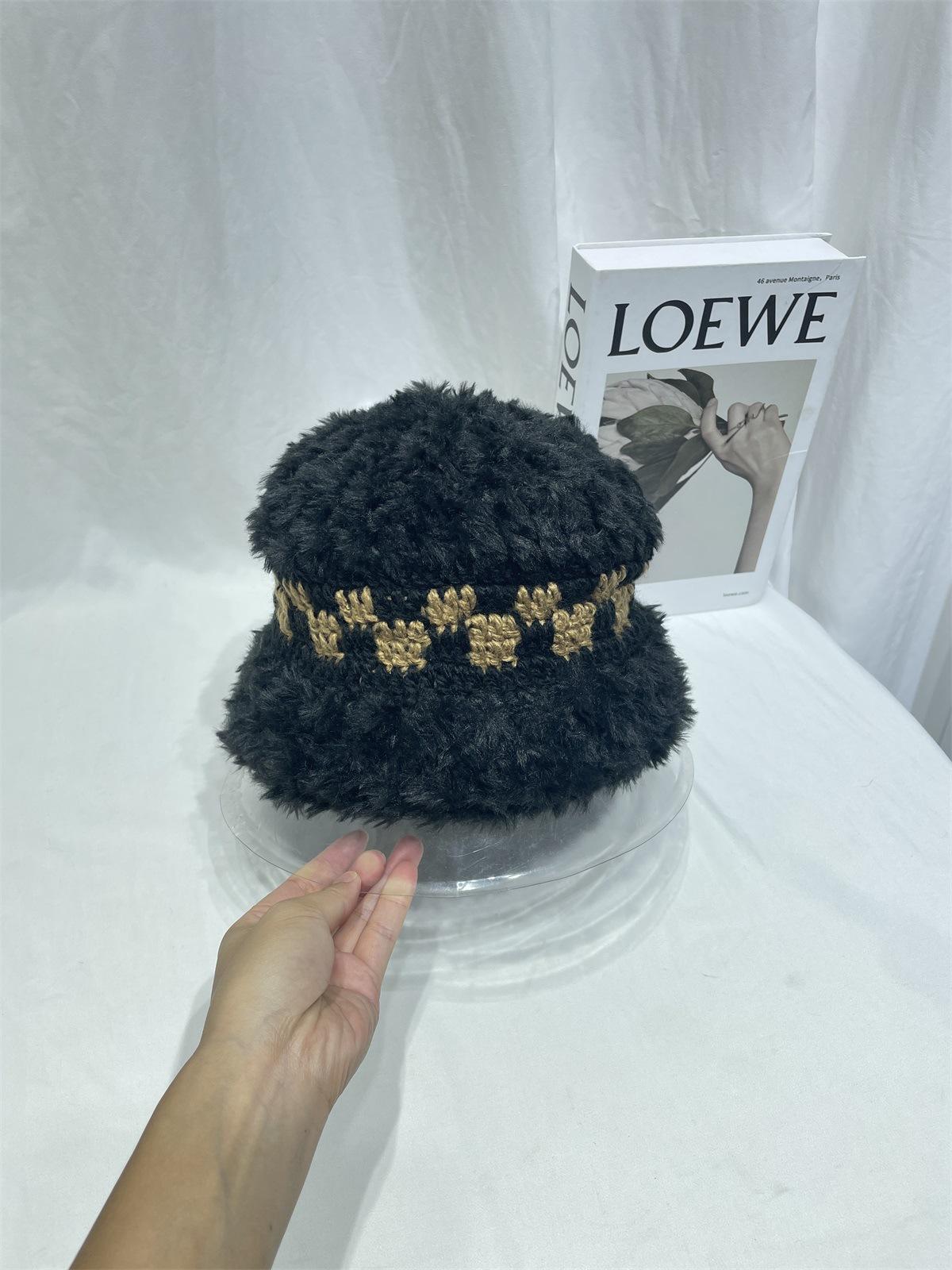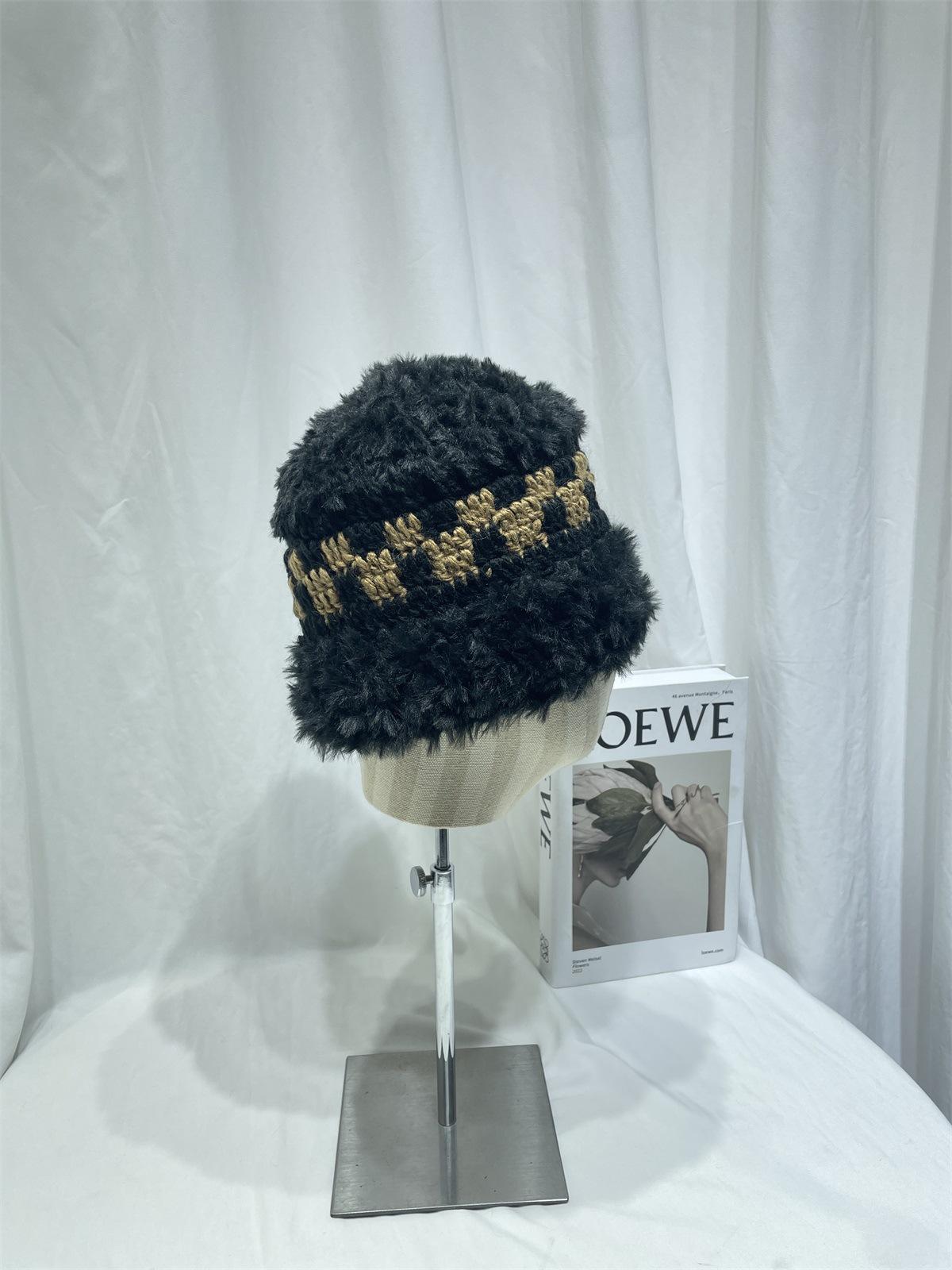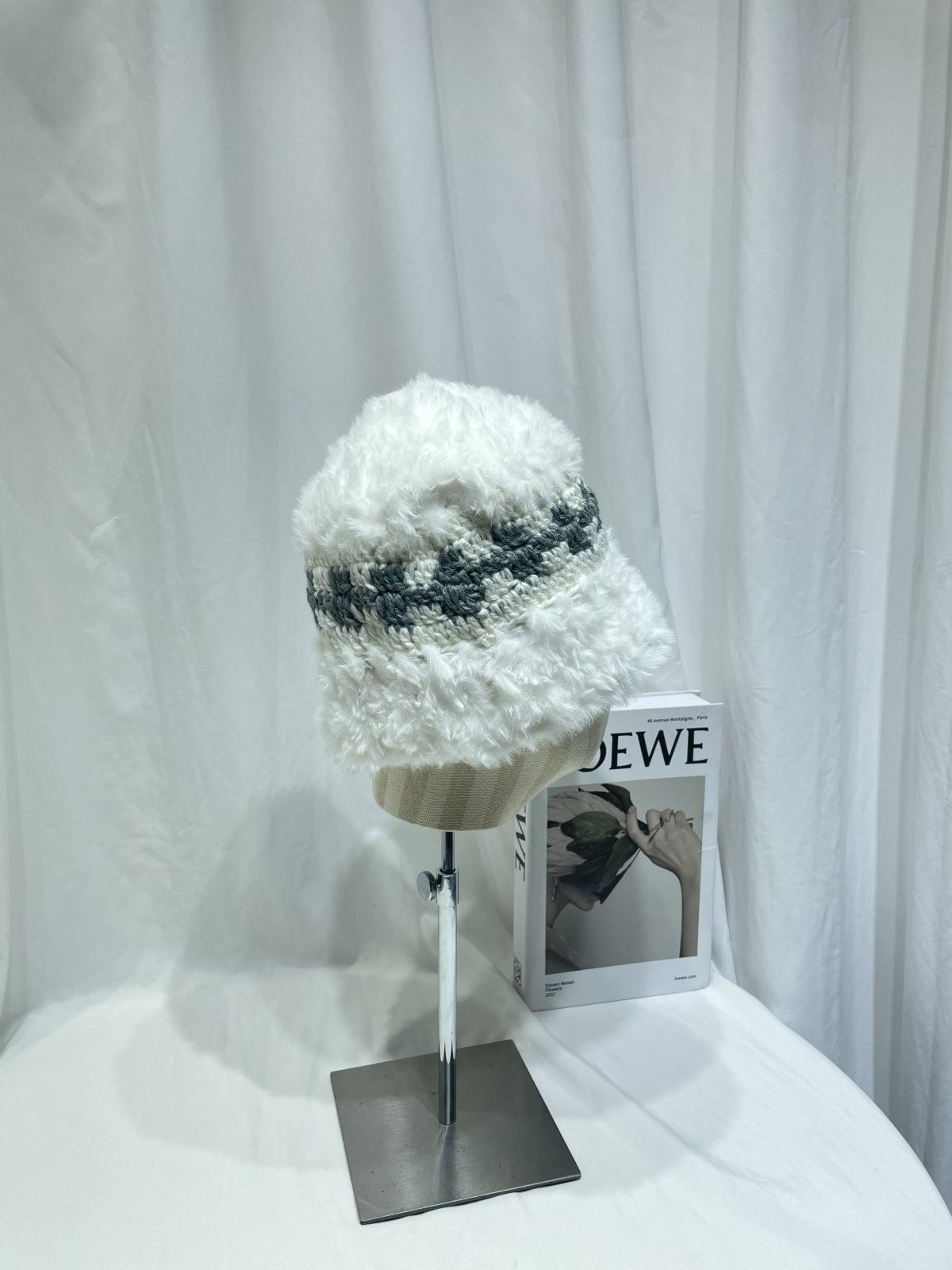 Estilo japonês simples contraste cor de pelúcia costura de malha chapéu de pescador feminino outono e inverno rosto olhando pequeno chapéu de bacia de lã chapéu de balde quente