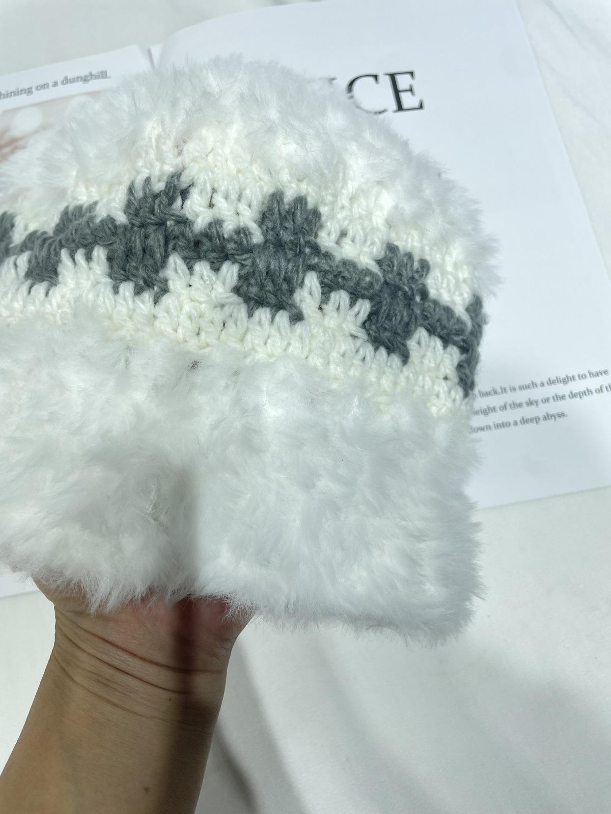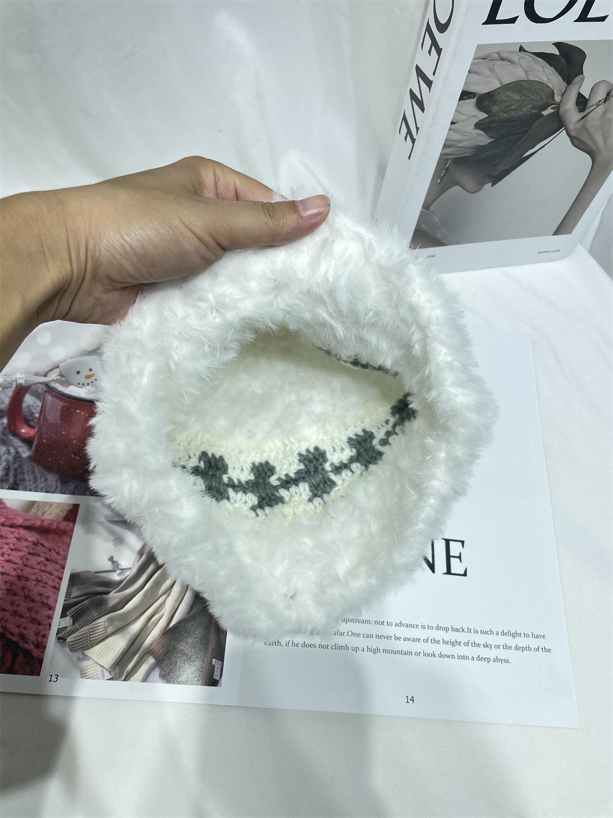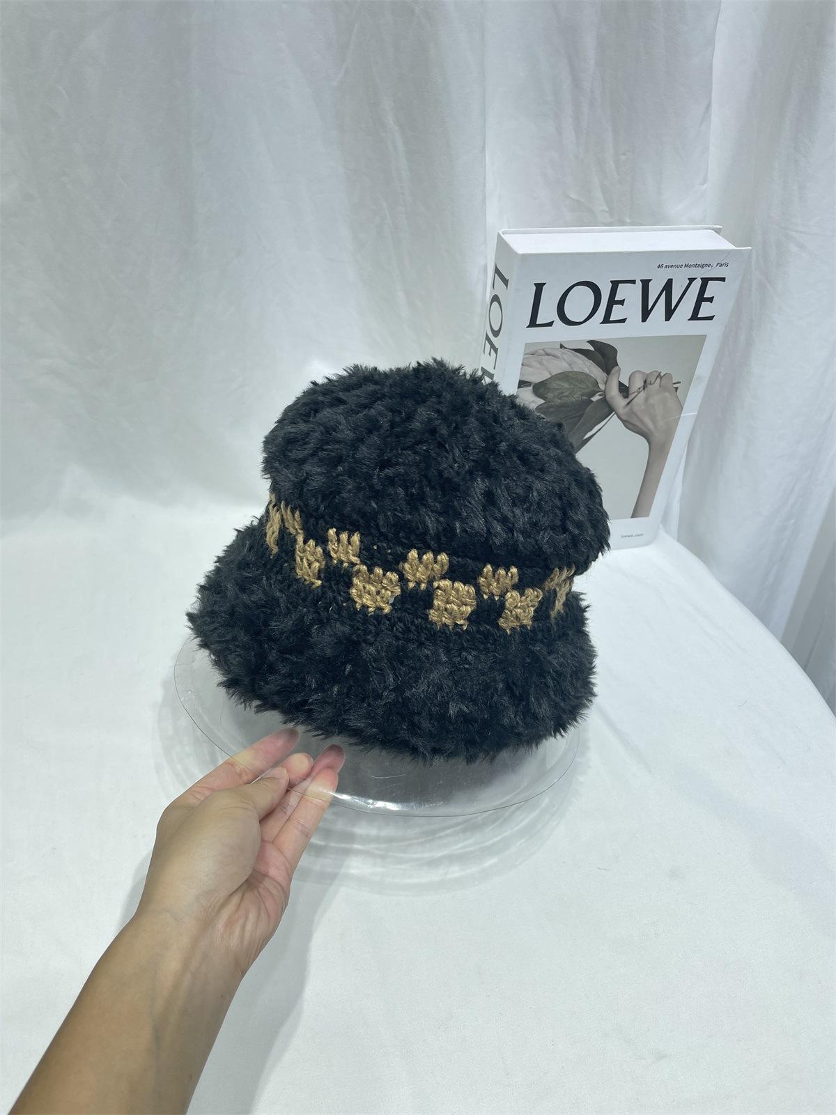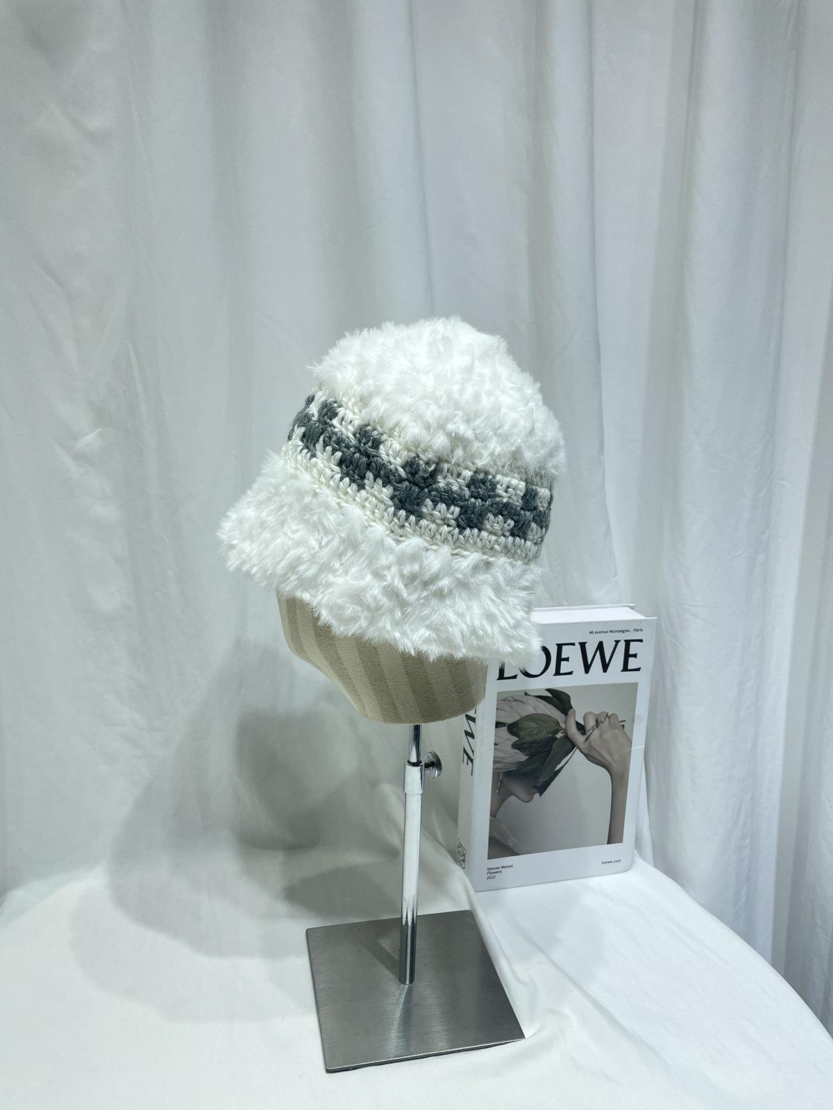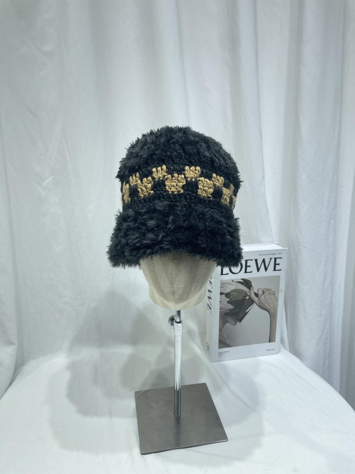 Estilo japonês simples contraste cor de pelúcia costura de malha chapéu de pescador feminino outono e inverno rosto olhando pequeno chapéu de bacia de lã chapéu de balde quente