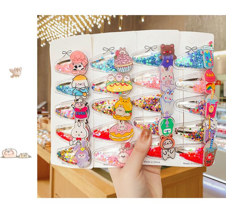 Conjunto de grampo de cabelo novo para crianças Estilo coreano areia movediça bb clipe grampo de cabelo dos desenhos animados não machuca o cabelo feminino franja clipe acessórios de cabelo cocar
