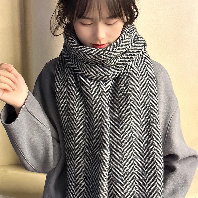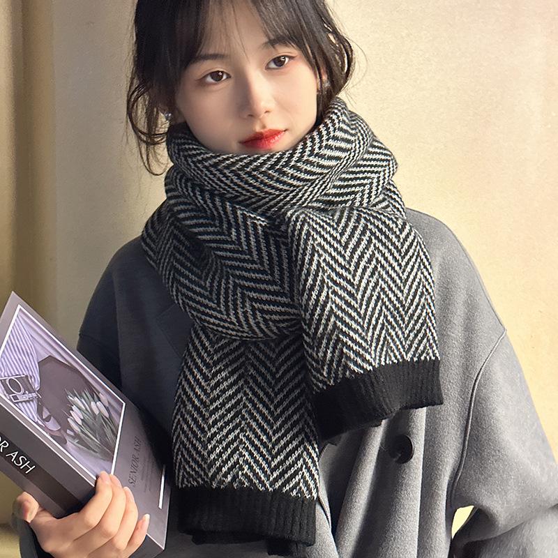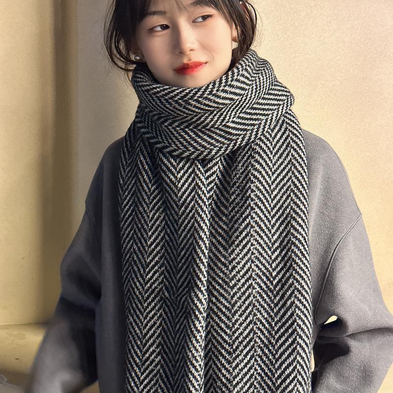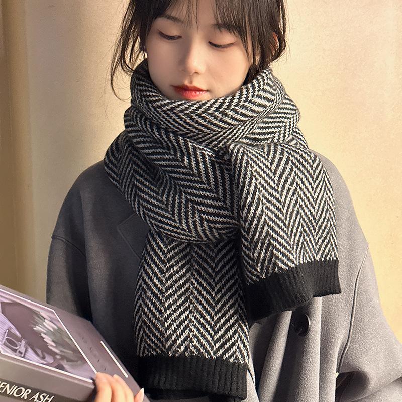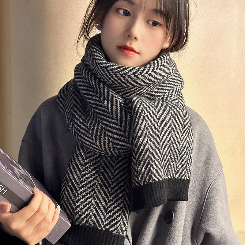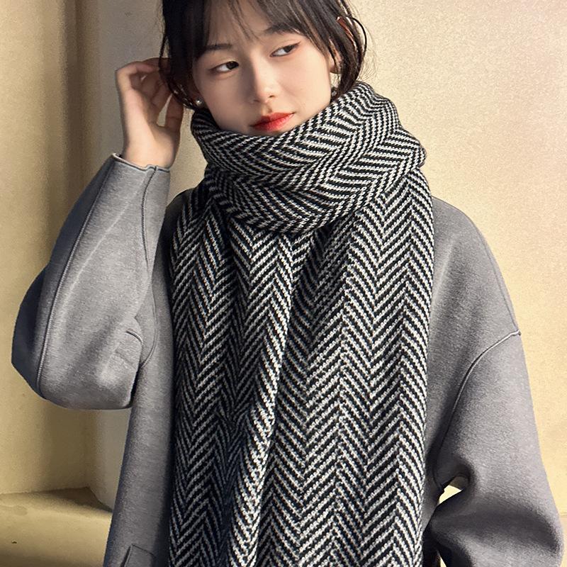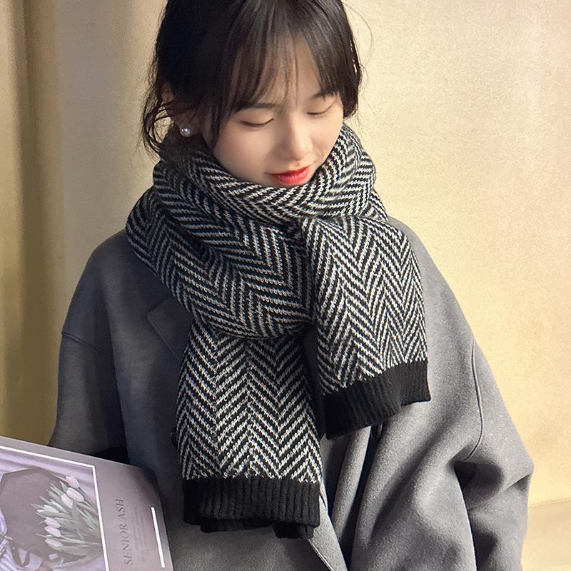 Padrão clássico de espinha de peixe ~ azul escuro azul claro * cachecol de malha outono e inverno versátil quente estudante casal cachecol alto sentido