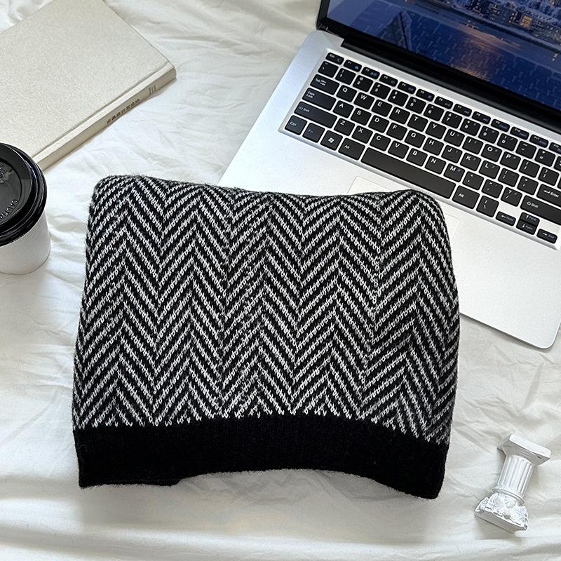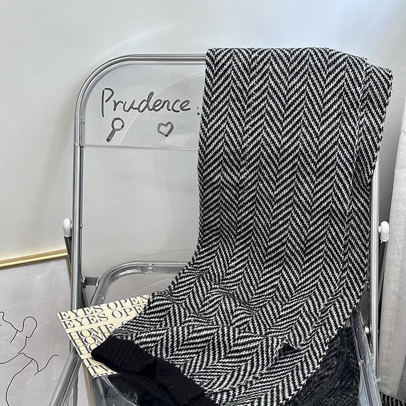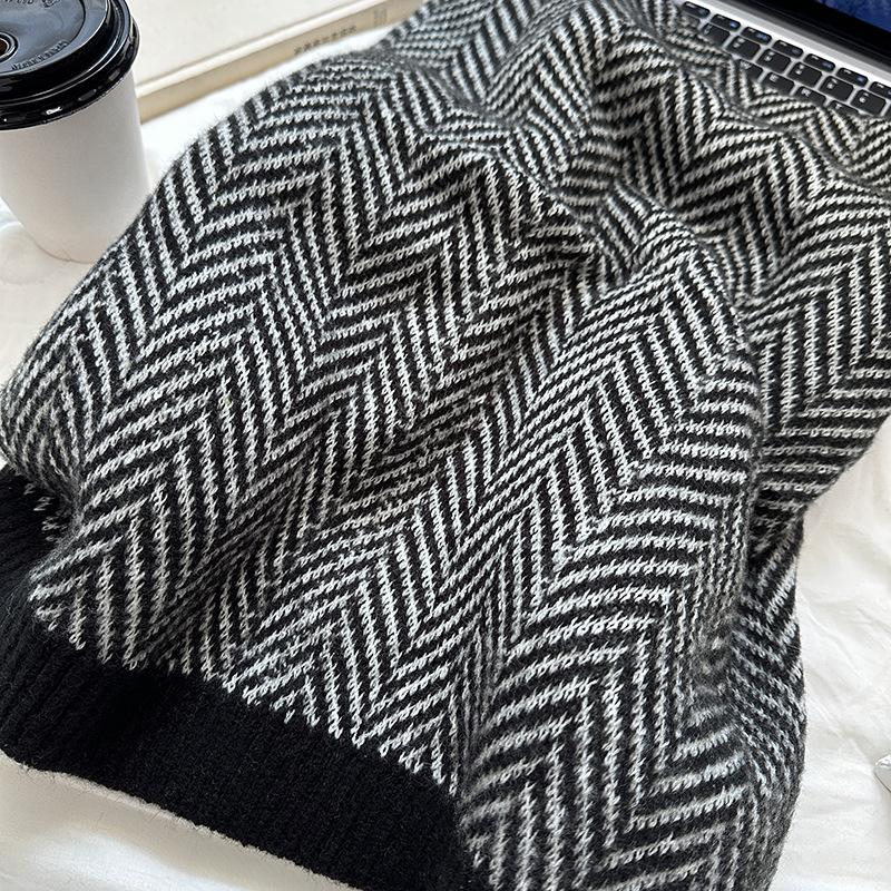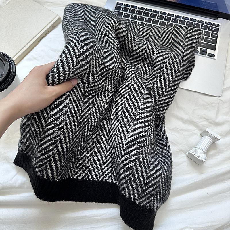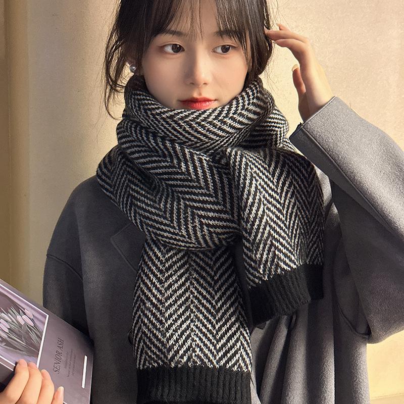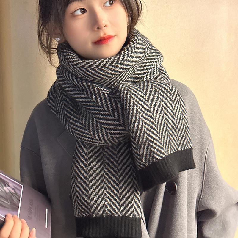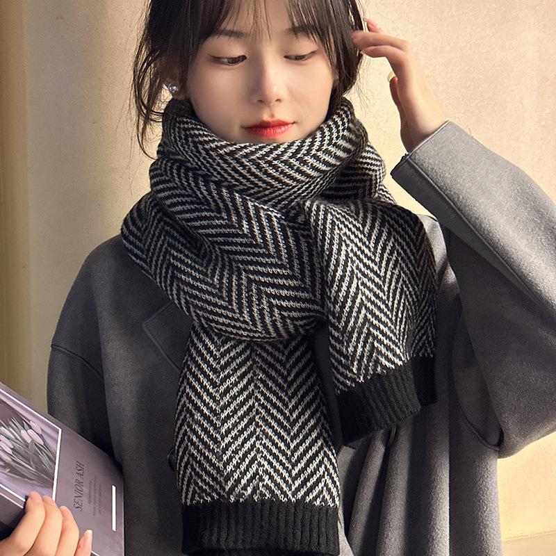 Padrão clássico de espinha de peixe ~ azul escuro azul claro * cachecol de malha outono e inverno versátil quente estudante casal cachecol alto sentido