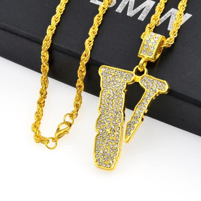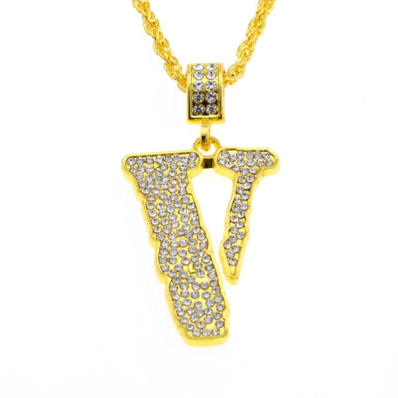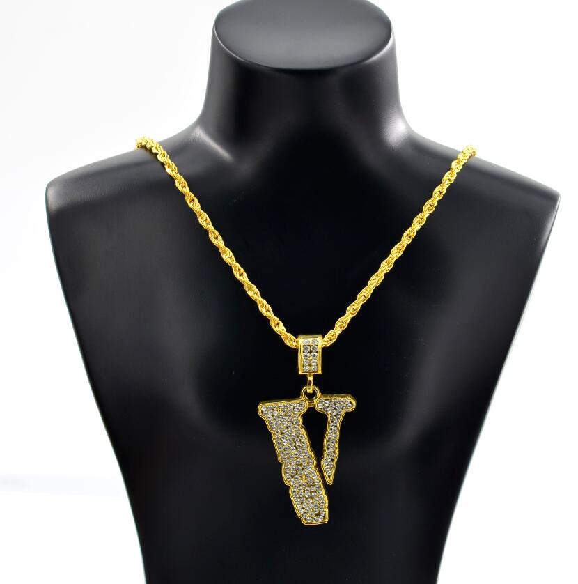 EBAY Hot New Fashion Brand Hip Hop Pingente Dos Homens Moda Diamante V Colar Cross-border Jóias K1177