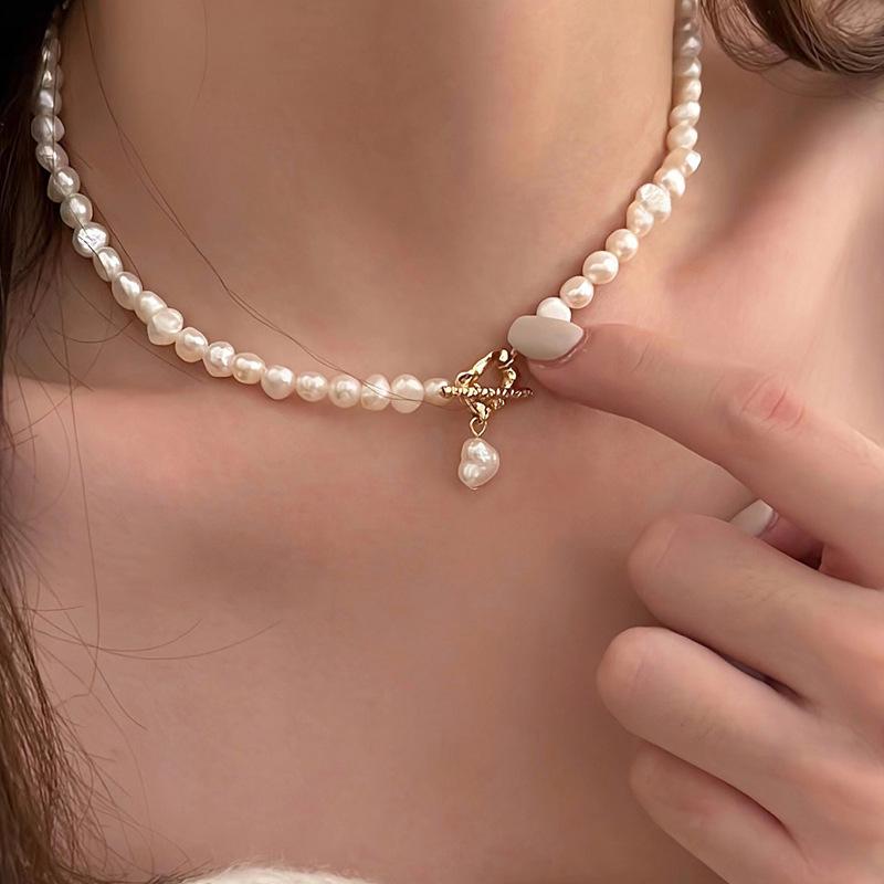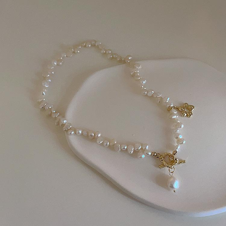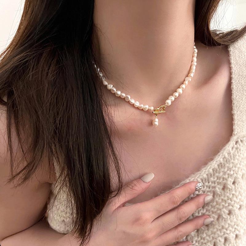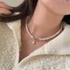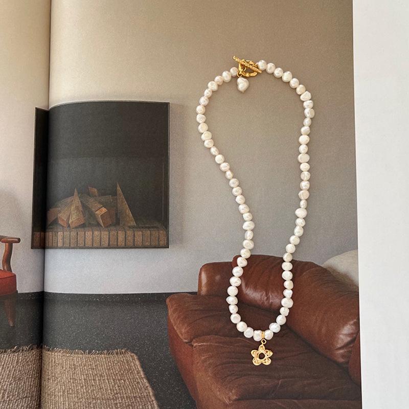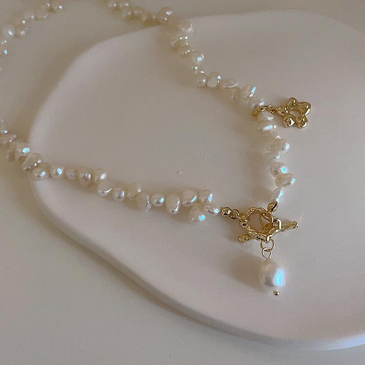 Colar de Flores de Pérolas de Água Doce Multibanda Coreano Feminino Nicho Retrô Personalidade Simples Colar de Todos os Fósforos Corrente